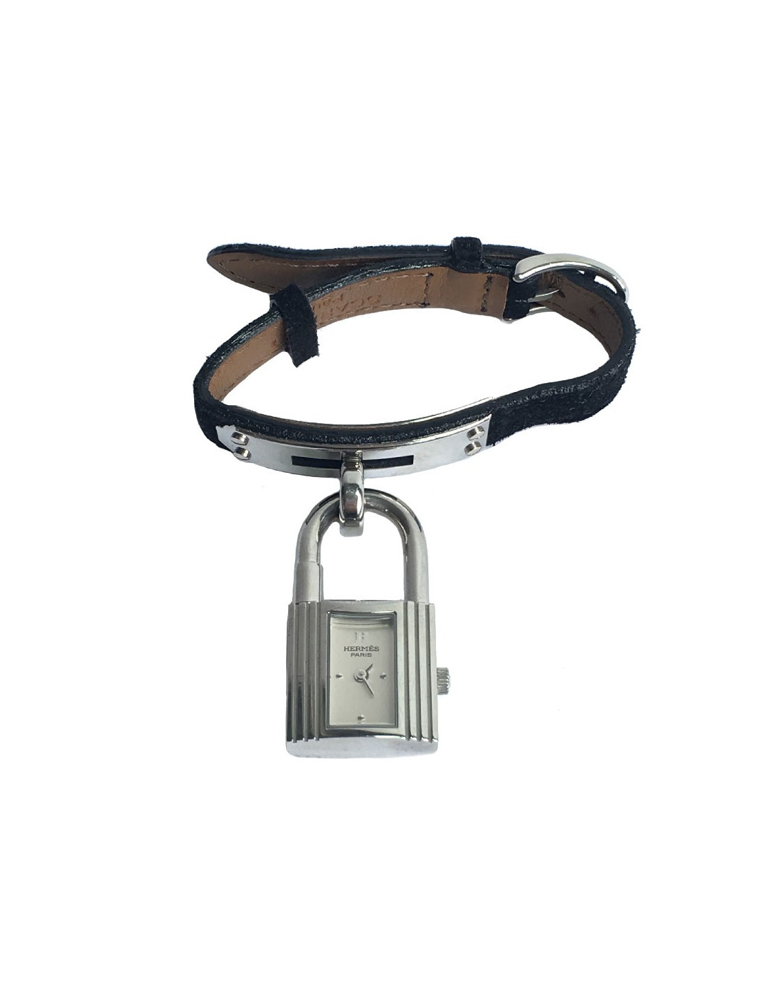 Kelly Hermès small model watch. Opaline silvered metal face, quartz movement.