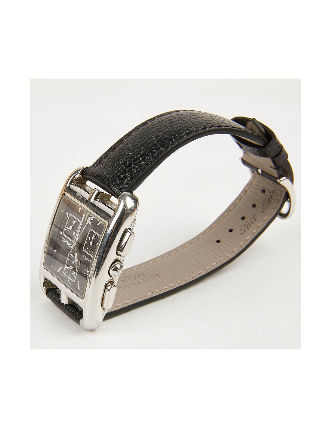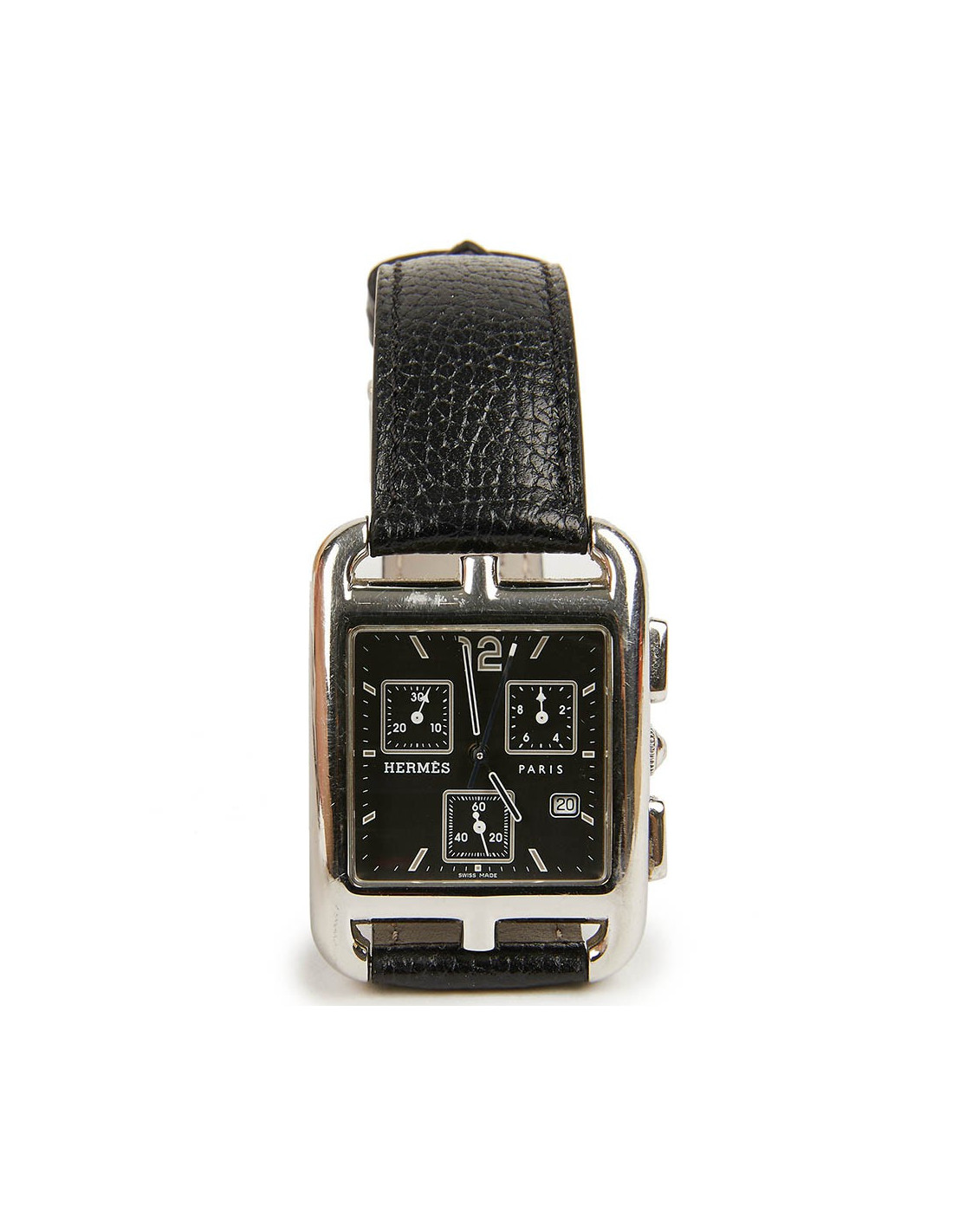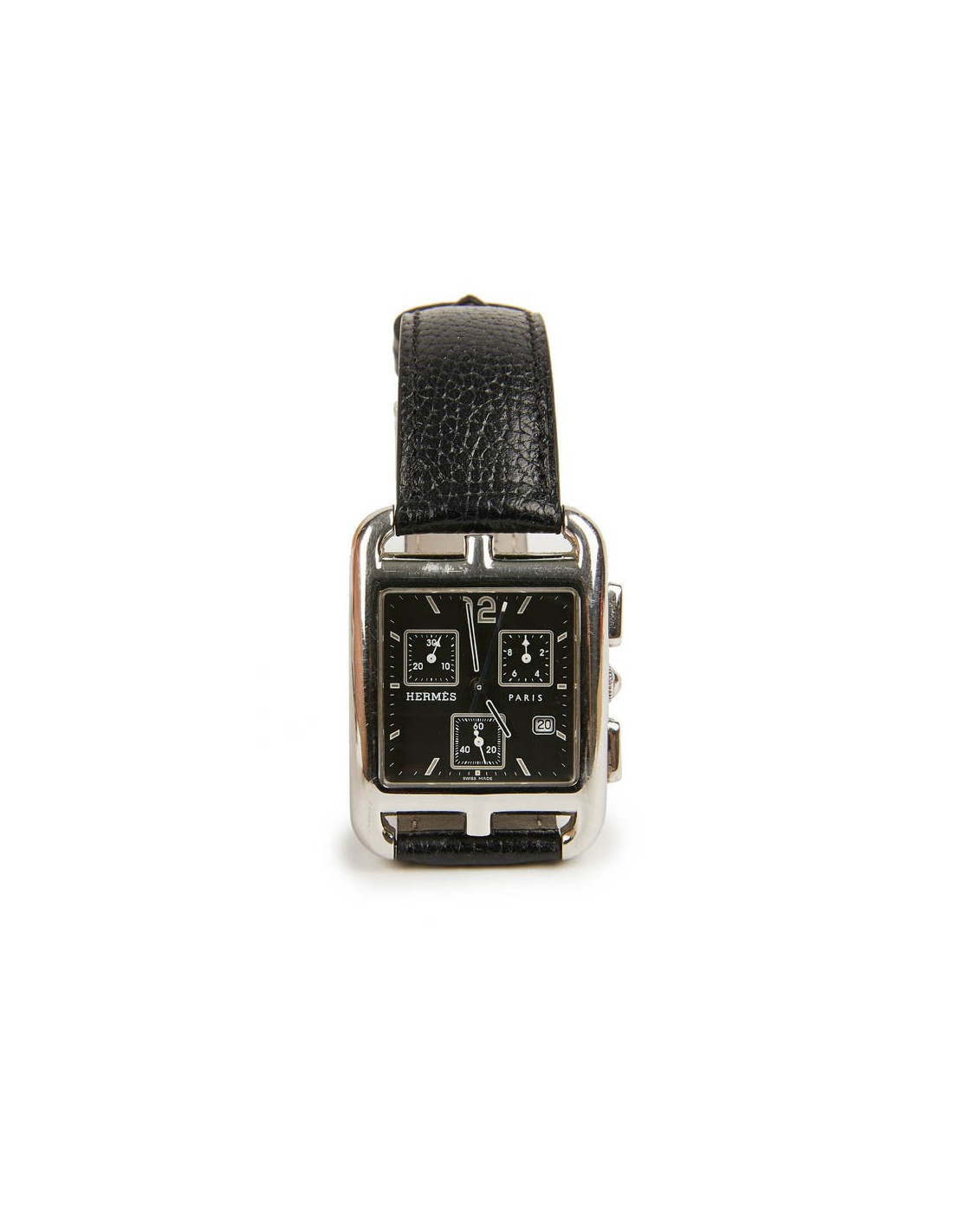 Last items in stock WATCHES HERMES watch model 'Cape Cod' small model with black mississipi alligato bracelet HERMES 21724 2,290.00 € Hermès watch model 'Cape Cod' small model. Double loop bracelet in black mississipi alligator. Quartz movement, steel case, sapphire crystal, opaline silver metal dial. Water resistant to 30 m. Made in Switzerland. Some micro scratches on the case. Dimensions: total length (2 bracelets + dial): 39.5 cm Case: 2,3x2,3 cm, Wrist circumference: 150-165 mm... Add to cart