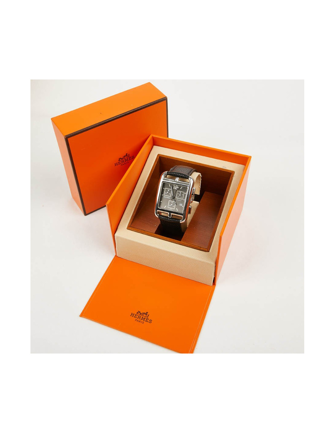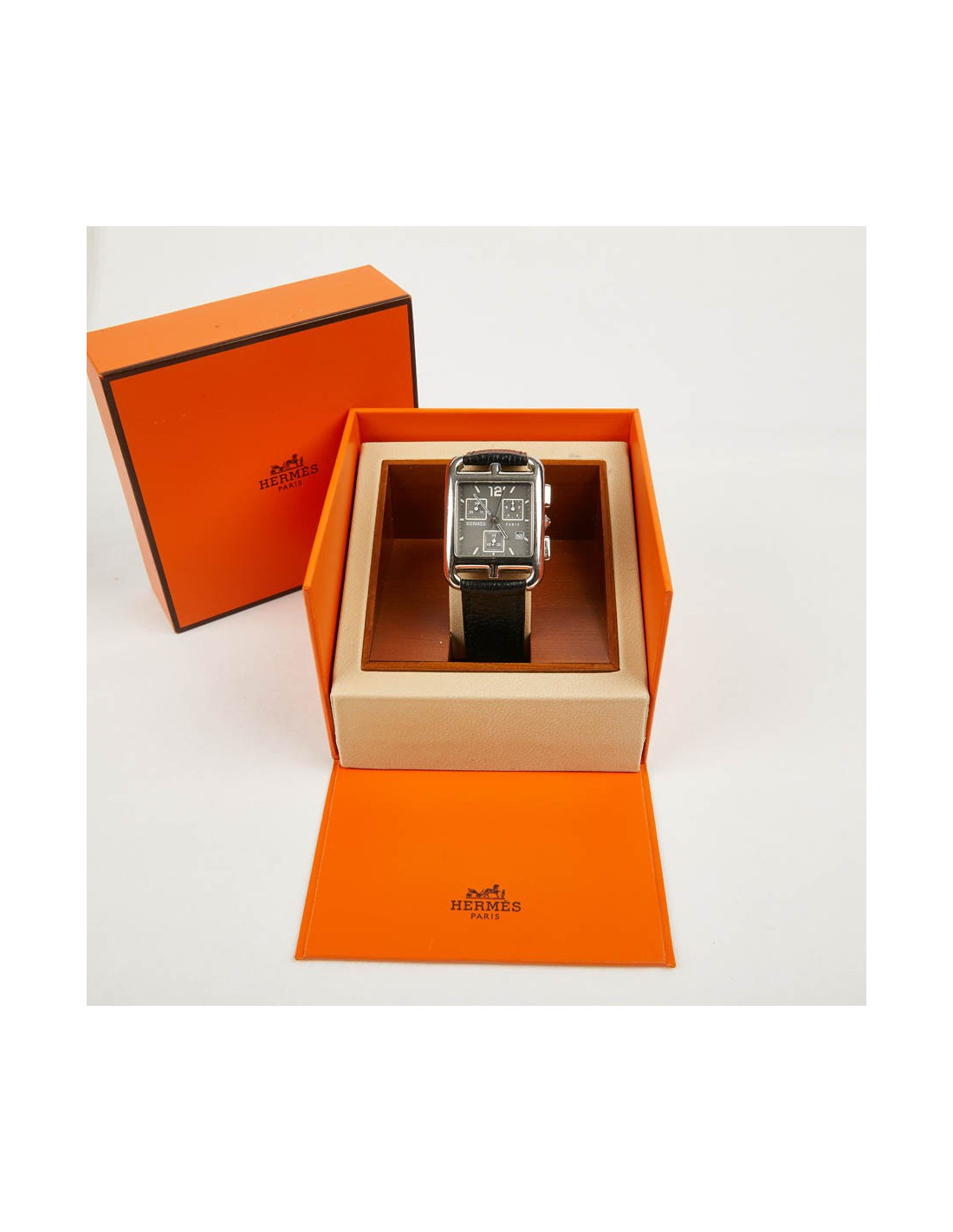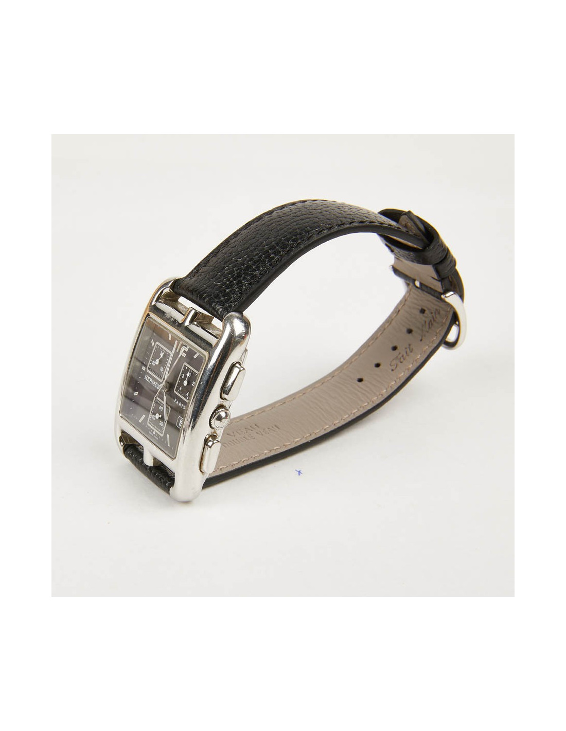 Last items in stock WATCHES HERMES watch model 'Cape Cod' small model with black mississipi alligato bracelet HERMES 21724 2,290.00 € Hermès watch model 'Cape Cod' small model. Double loop bracelet in black mississipi alligator. Quartz movement, steel case, sapphire crystal, opaline silver metal dial. Water resistant to 30 m. Made in Switzerland. Some micro scratches on the case. Dimensions: total length (2 bracelets + dial): 39.5 cm Case: 2,3x2,3 cm, Wrist circumference: 150-165 mm... Add to cart