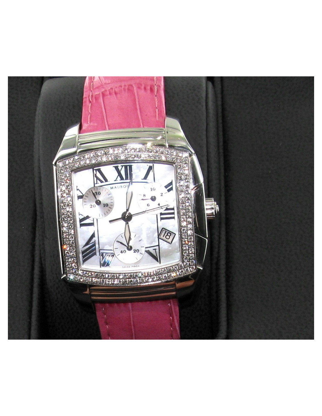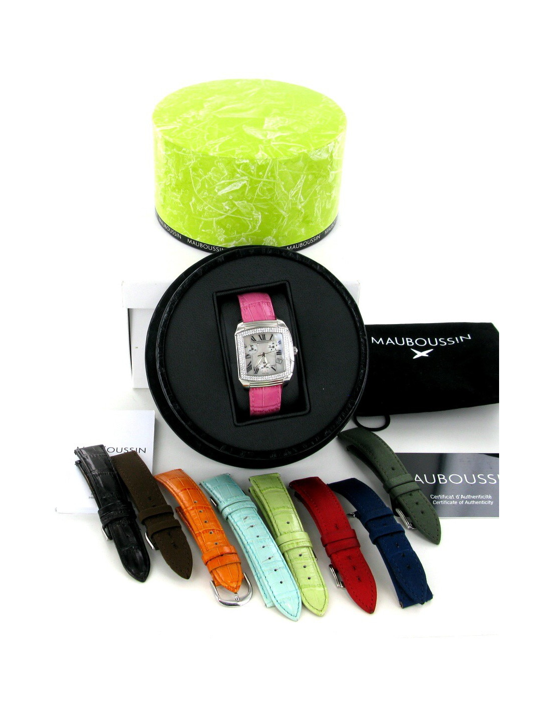 MAUBOUSSIN watch in steel and diamonds, à Quartz set with 2 rows of diamonds.