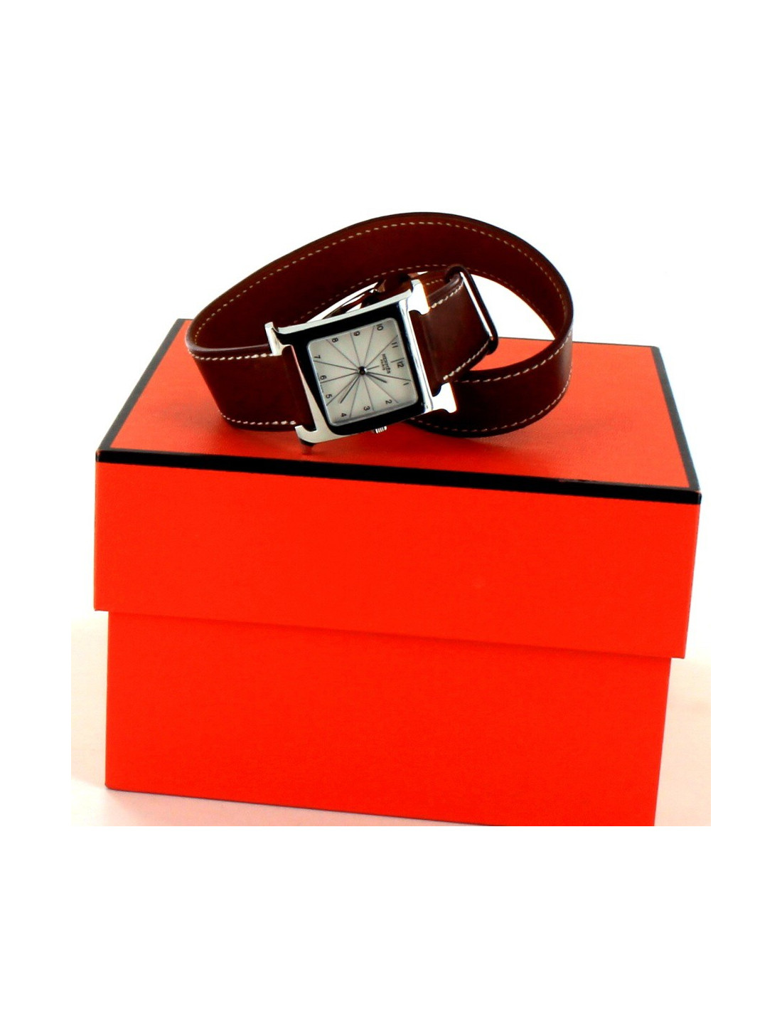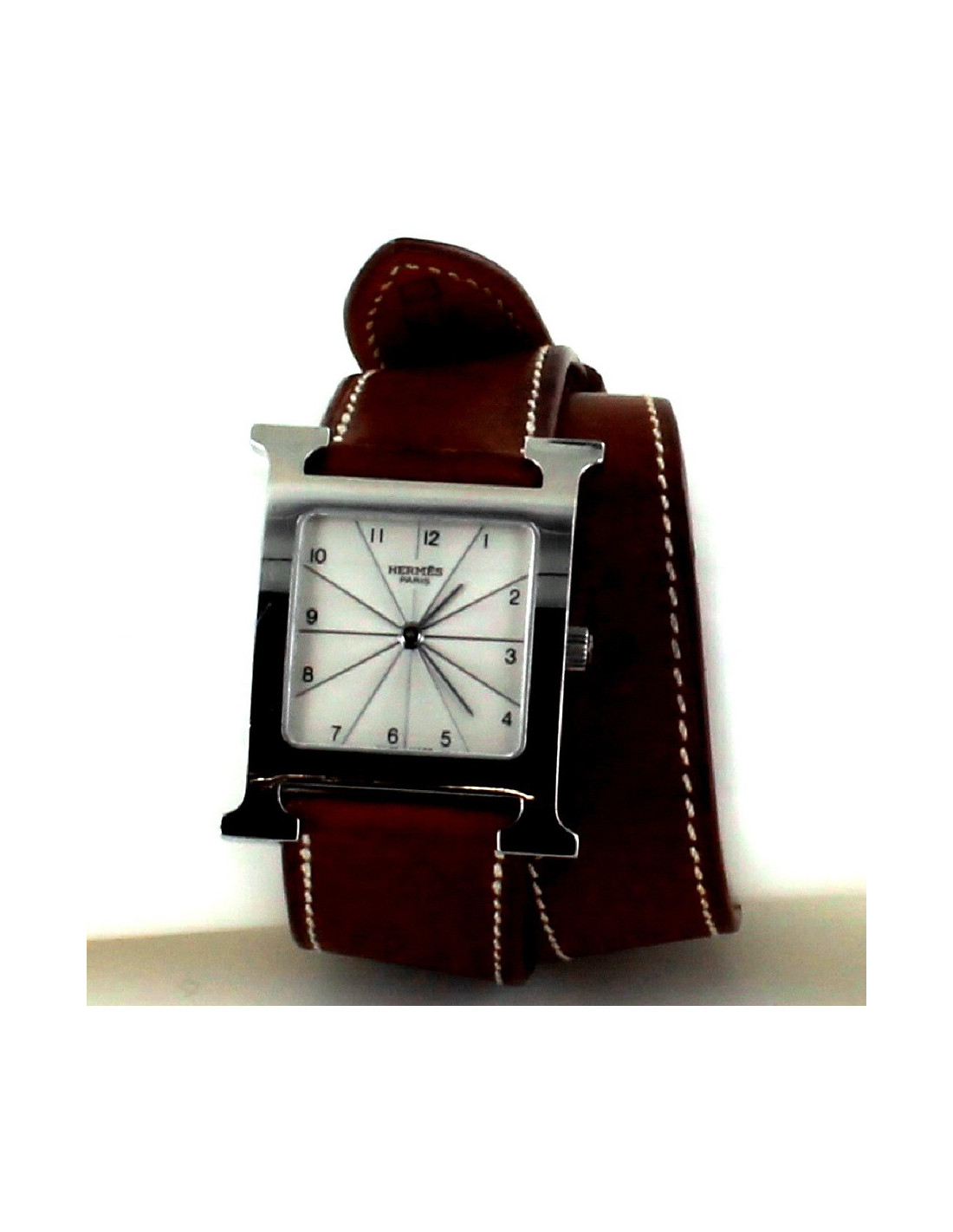 Watch time: HERMES, steel, white background, size mm 26 x 26 Quartz.