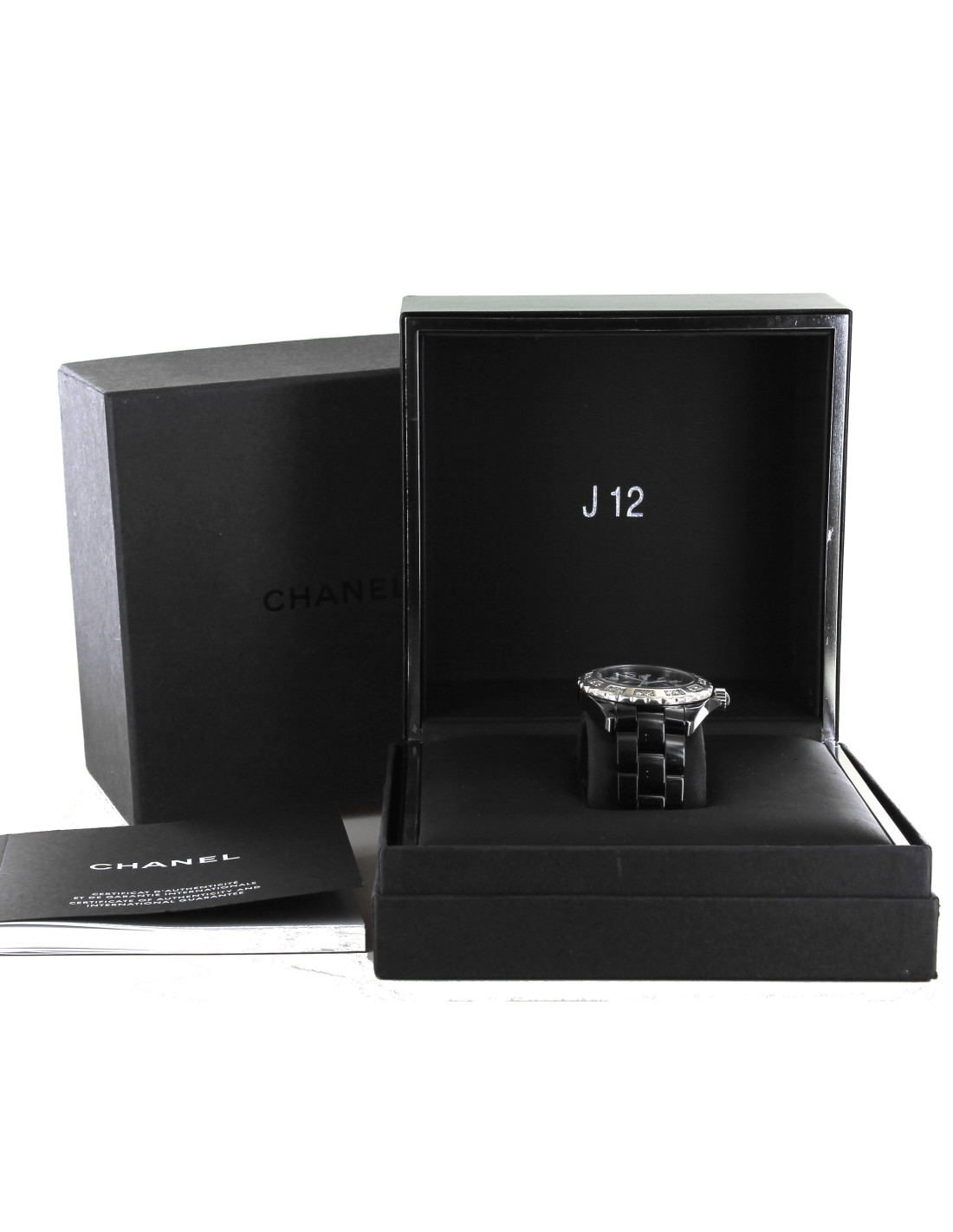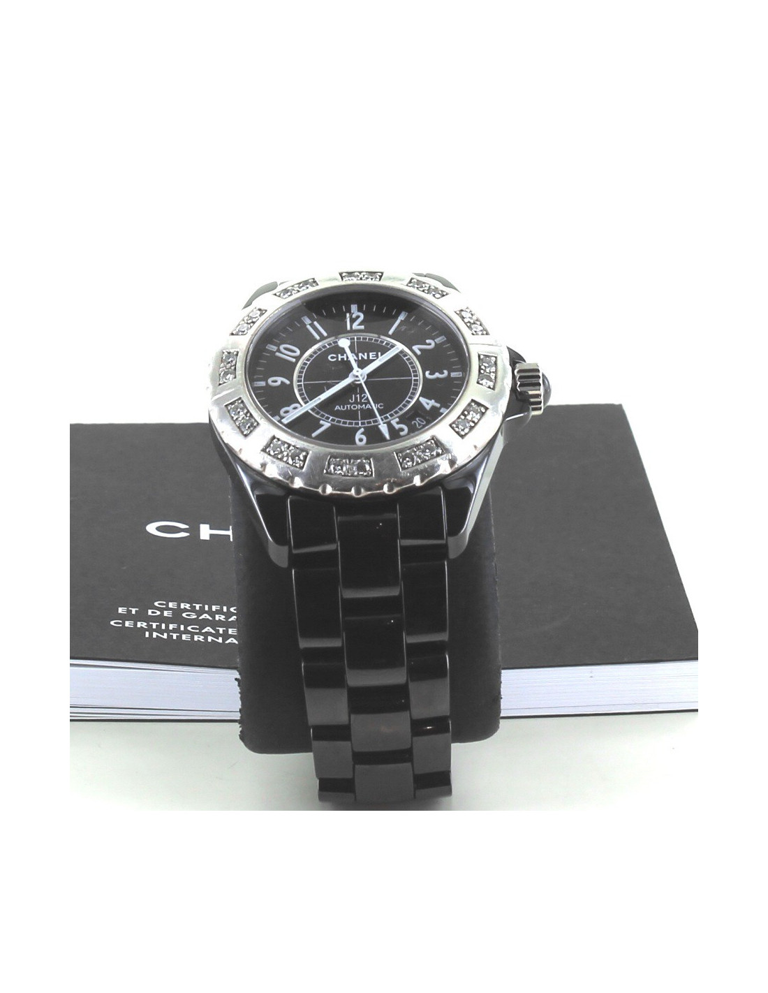 Watch J 12 Black ceramic and diamonds CHANEL, already worn - micro scratches on the 200 m waterproof - automatic - dial - clasp-