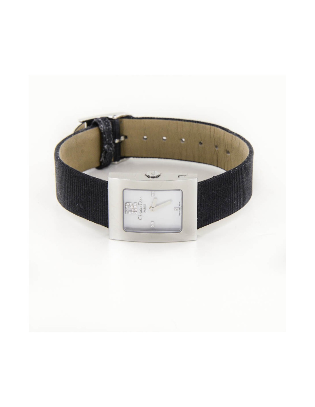 Watch Dior Collection "Malice", steel silver palladium, in very good condition. She has micro scratches from use - black satin strap in very good condition, very little worn, serial number engraved on the back of the watch, Christian Dior Paris swiss made-, inner dial mother of Pearl and numbers diamond. sealing: 30 meters -. the watch measures: 2.5 cm x 1.9 cm - thickness at the centre 0.5 cm - length at the last hole 20 cm - 1.4 strap width cm- guarantee certificate - certificate: 19 brilliant (0.041 carats)- and 2 booklets- livrée dans son coffret et boite Dior