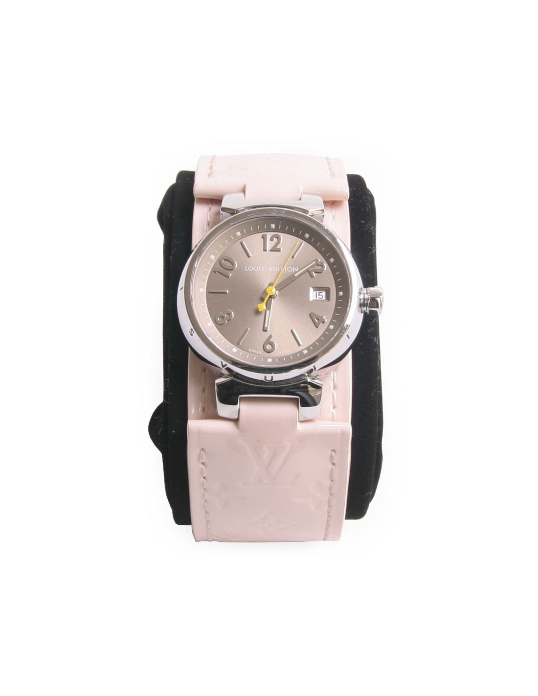 Watch "Drum" Louis Vuitton, with bracelet monogram pink powder varnished, quartz, small model.