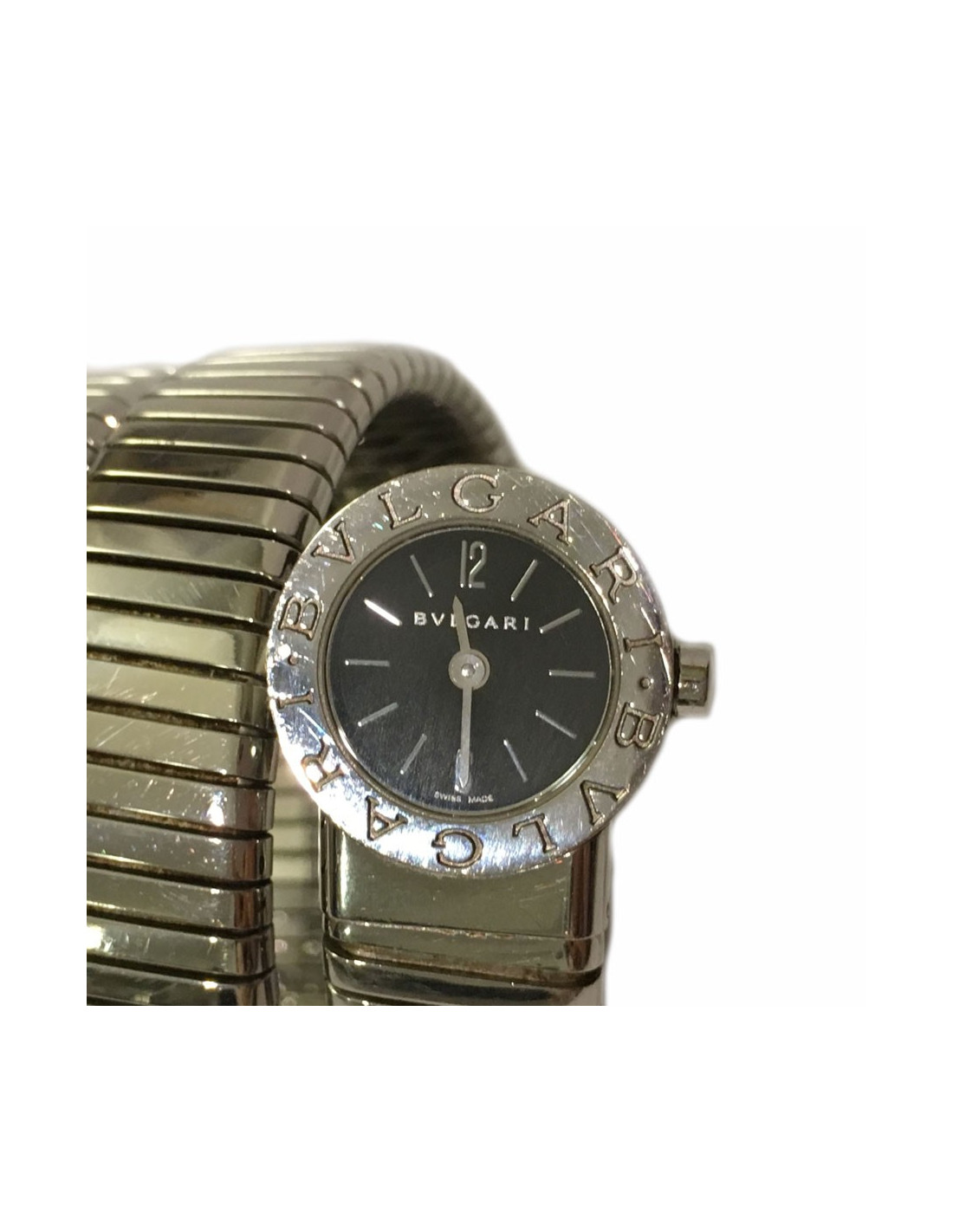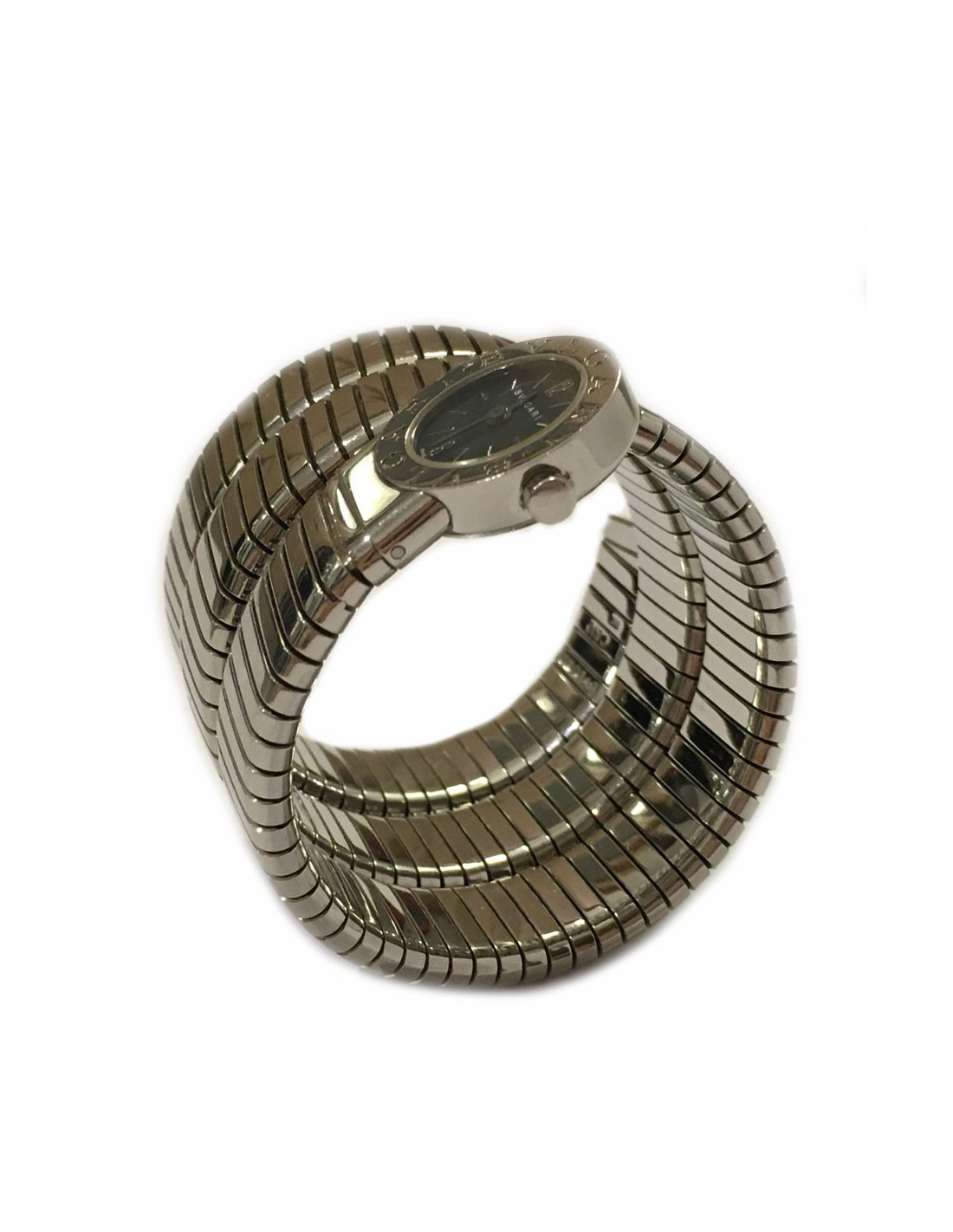 Mythical BULGARI Tubogas. Bracelet in the shape of snake in polished stainless steel. The size of the bracelet (slightly stretchable) is ideal for a wrist end. movement Swiss Quartz. A few scratches on the bracelet that will fade after polishing.