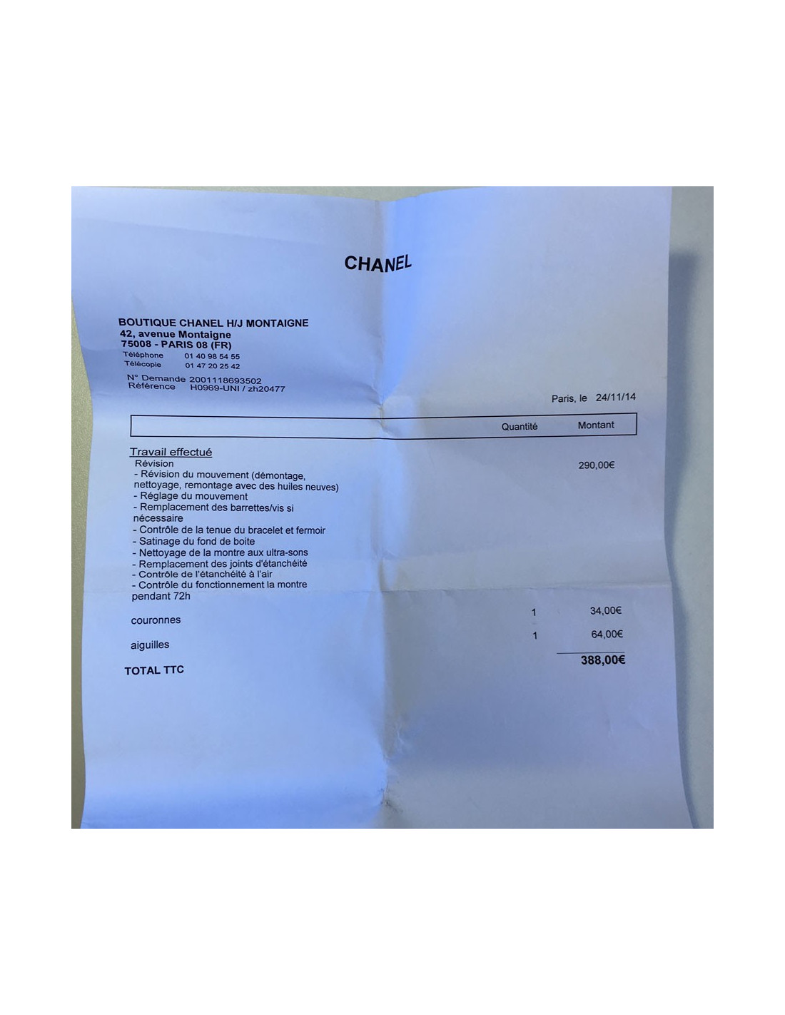 Elle a été révisée révisée dans la boutique CHANEL Montaigne-Paris (facture fournie)
