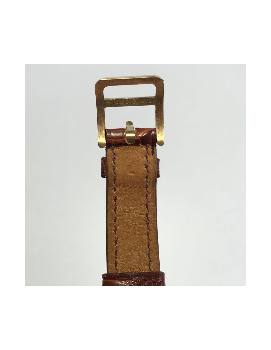 Quartz movement, gold-plated case and gold face. Serial number: 1048....Letter L in a square (2008). Dimensions: to 1st hole: 14.5 cm - to last hole: 17.5 cm - width: 1.5 cm