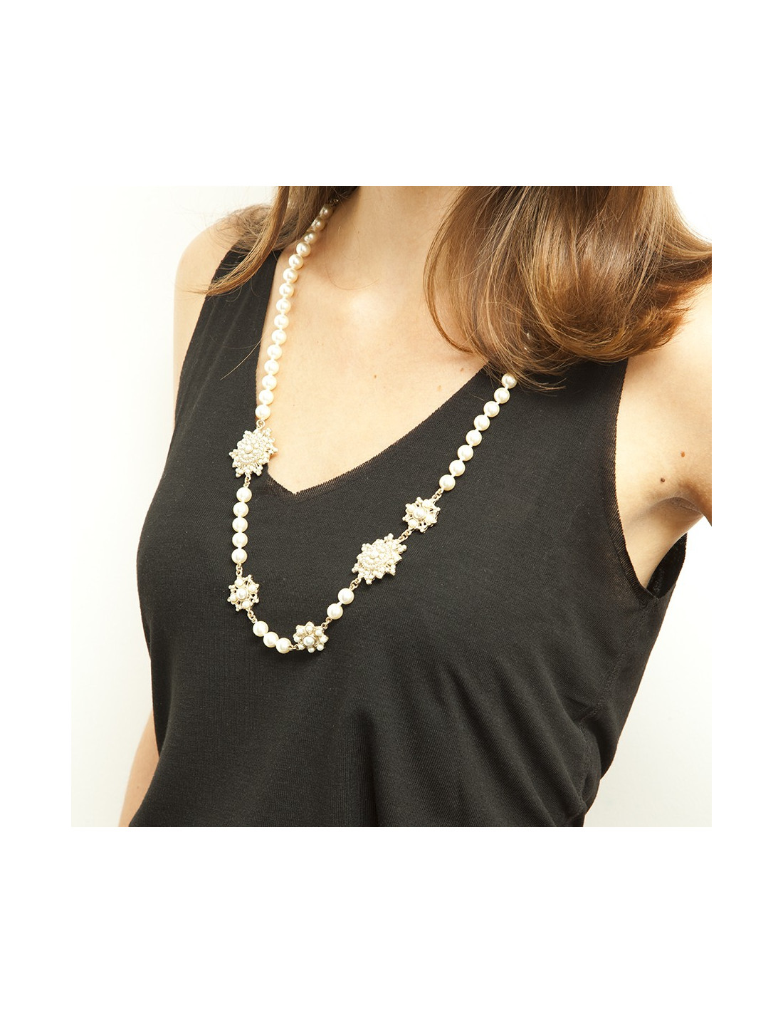 Last items in stock NECKLACES MARGUERITE DE VALOIS baroque mother-of-pearl molten glass beads long necklace MARGUERITE DE VALOIS 20654 290.00 € MARGUERITE DE VALOIS baroque pearls necklace Condition : never wornMaterials : baroque pearls, molten glassColor: mother-of-pearlsMeasurements: length when worn: 44 cm, total length : 93 cm Add to cart