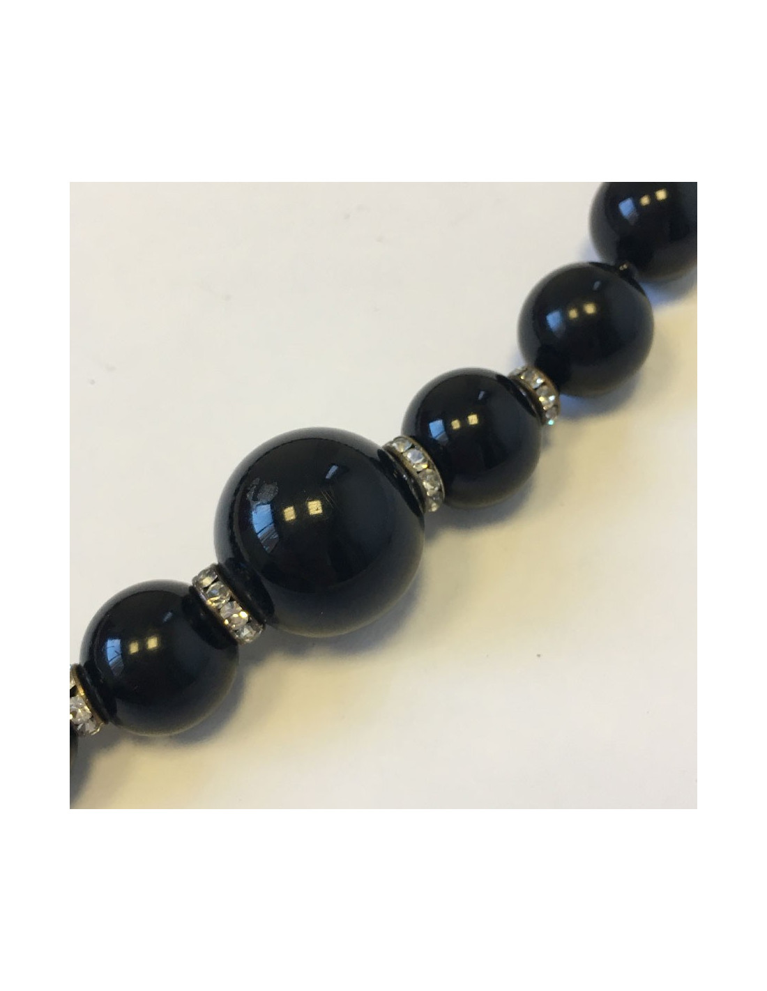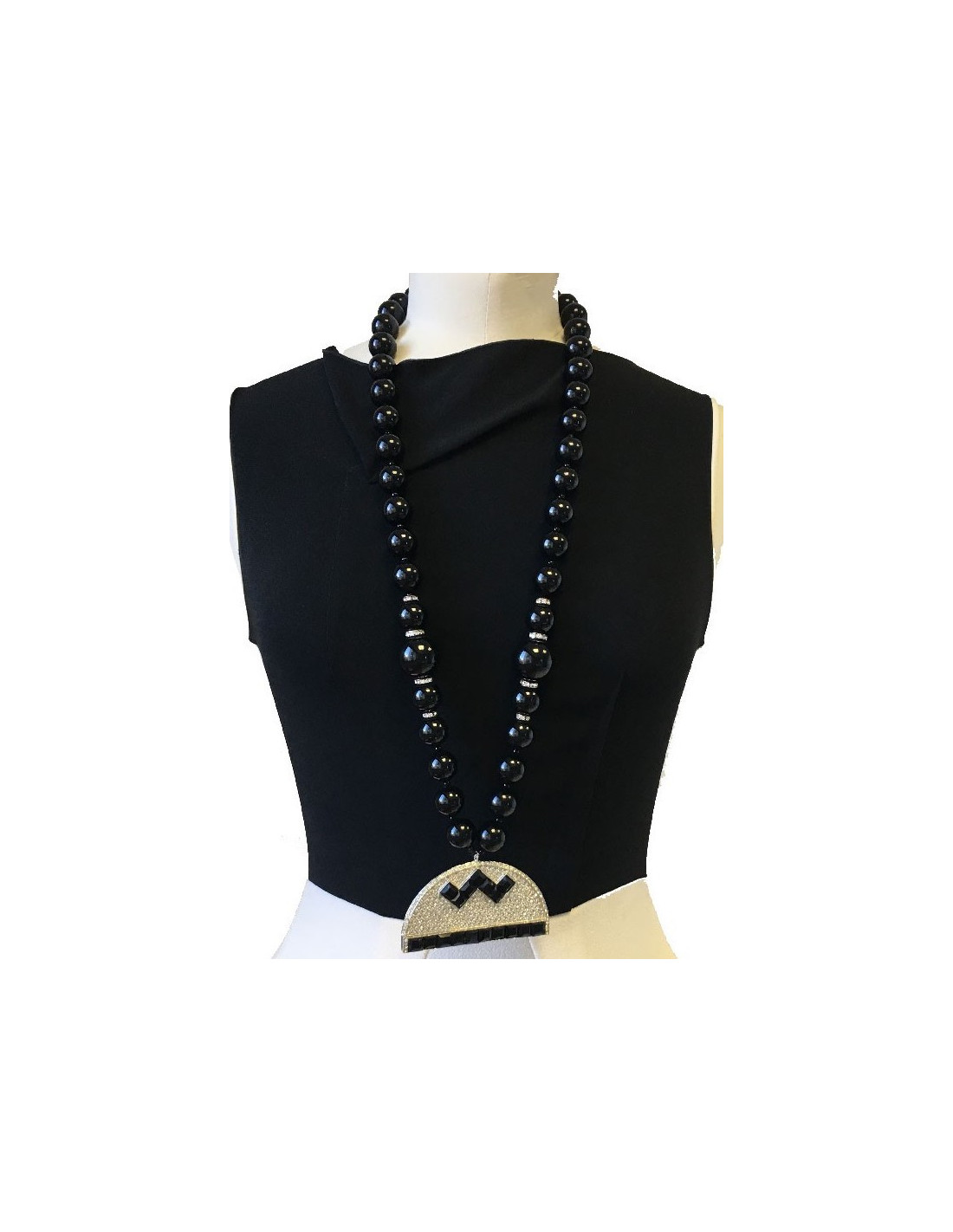 Last items in stock NECKLACES MARGUERITE de VALOIS silver chain, pearly beads, rhinestones and black stones long... MARGUERITE DE VALOIS 19100 90.00 € MARGUERITE DE VALOIS long necklace Made in FranceNever wornMaterials: molten glass, metal, rhinestones, costume stonesColors: black, blue, silverHardware: silver finish metalCan be worn simple or doubled.Measurements: total length: 57 cmDetails: Silver chain with pearly beads, faceted black and blue stones and rhinestones. Add to cart