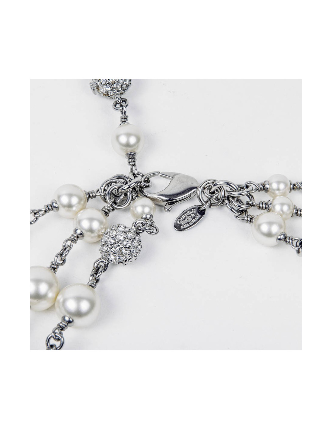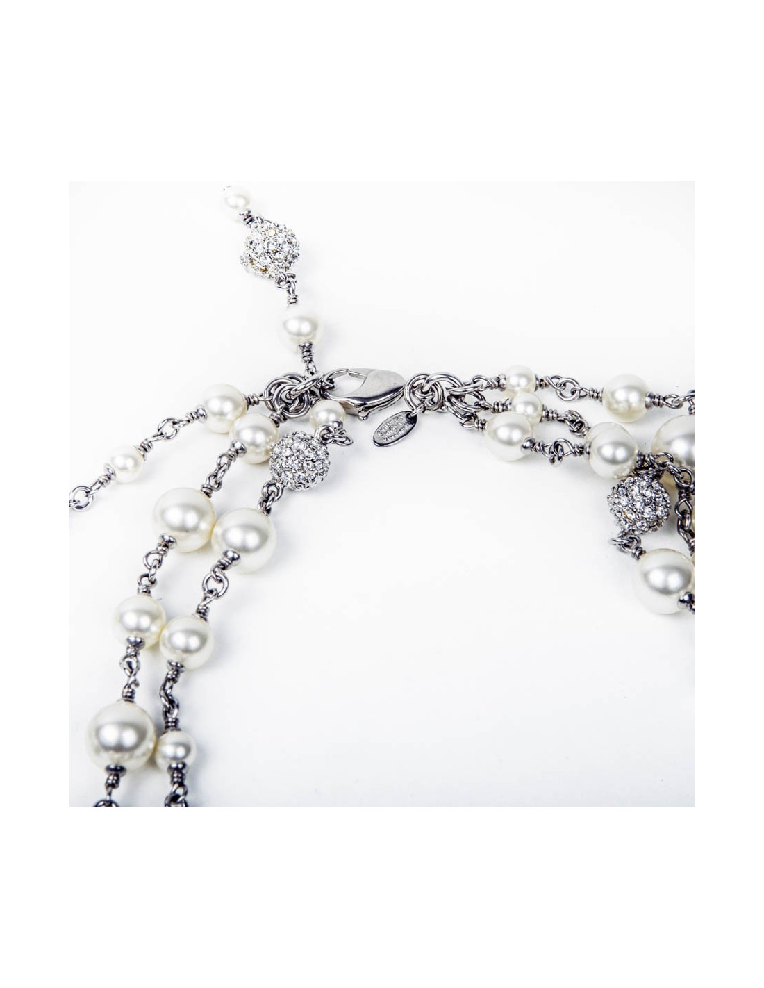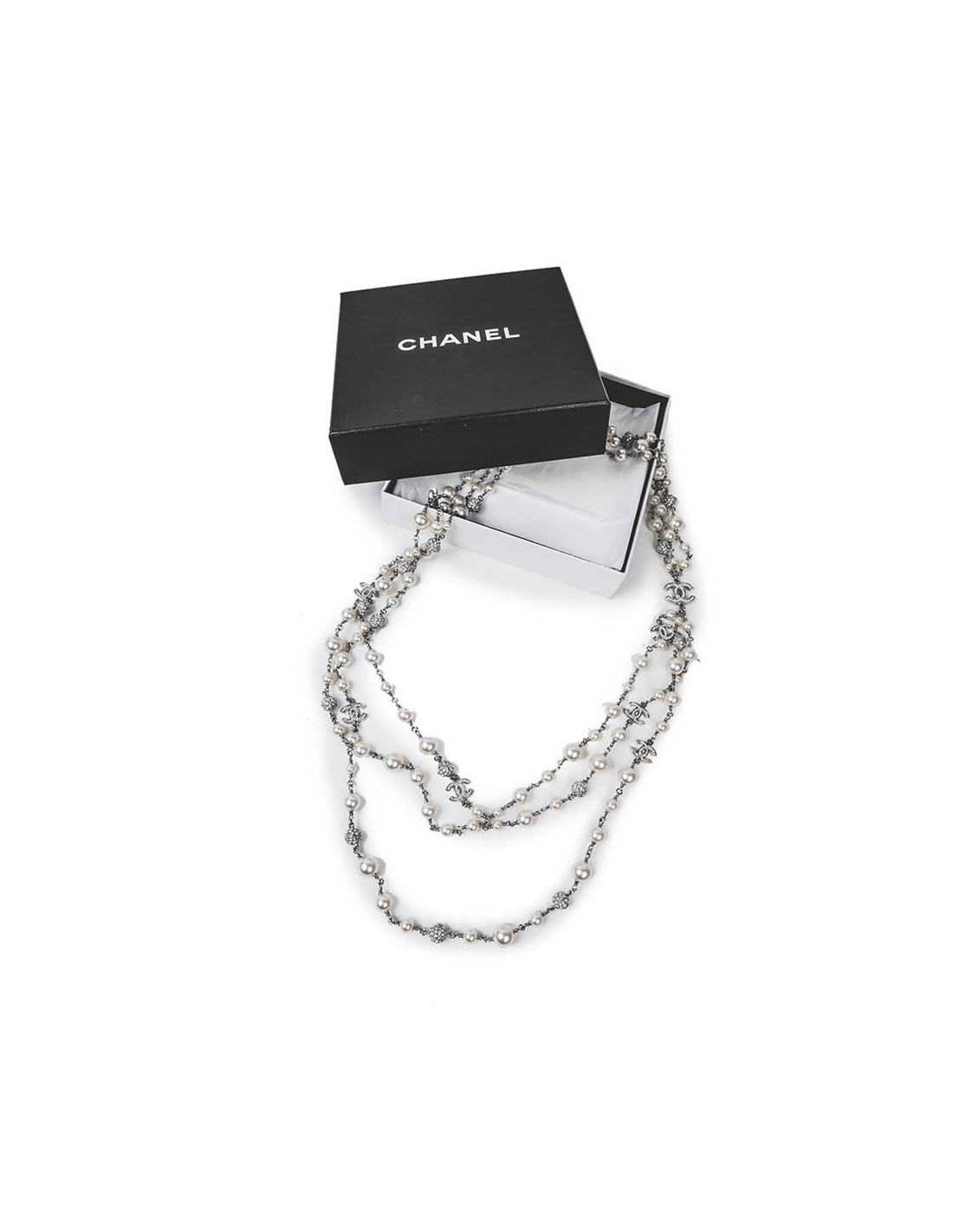 Chanel triple row necklace beads in paste of glass, CC and balls in rhinestones and silver metal.