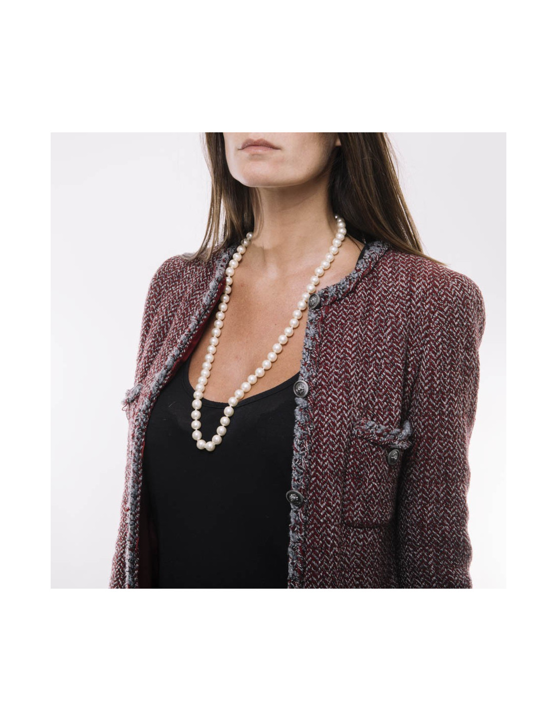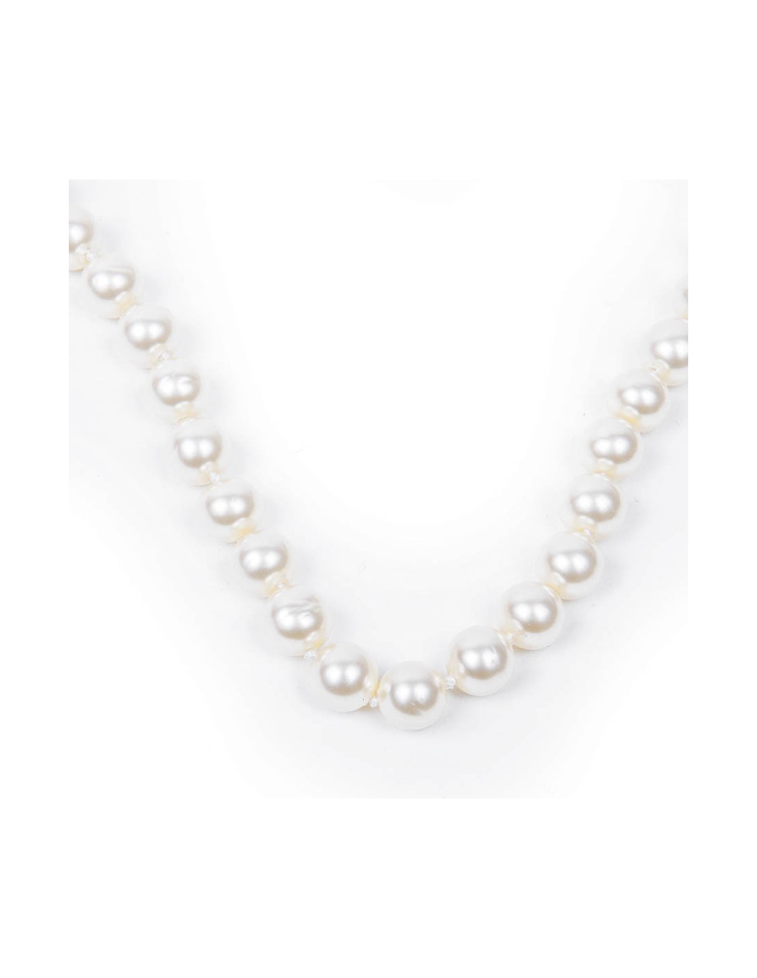 Last items in stock NECKLACES CHANEL vintage pearly pink molten glass long beaded necklace CHANEL 36454 1,390.00 € CHANEL vintage pearly pink molten glass long beaded necklace Condition : very goodMade in FranceMaterial : pearly molten glass beadsColor : pinkMeasurements : total length 86 cm, adjustable on 4 cmHardware : gold plated metalStamp : noYear : circa 1980Details : beads entirely handmade by GRIPOIX. Add to cart