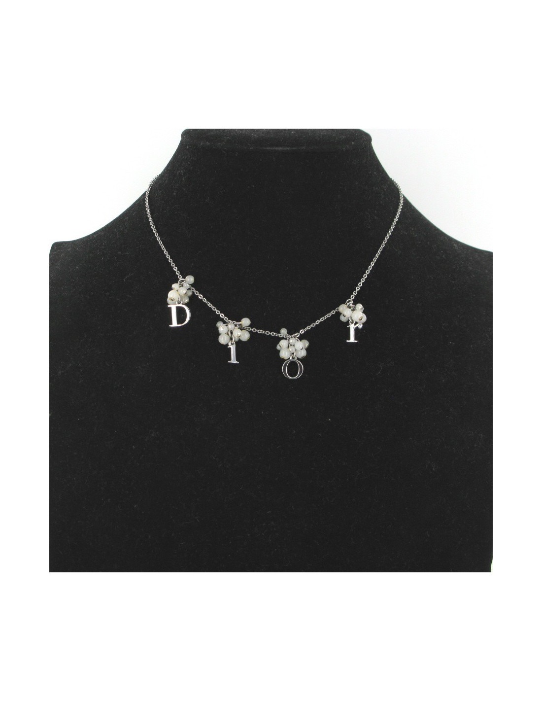 DIOR necklace in silver metal and white pearls