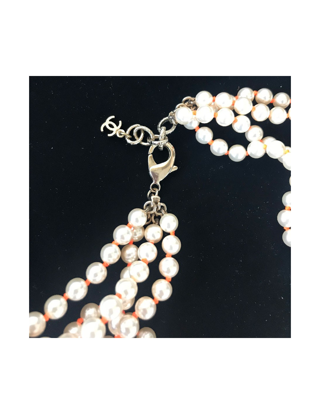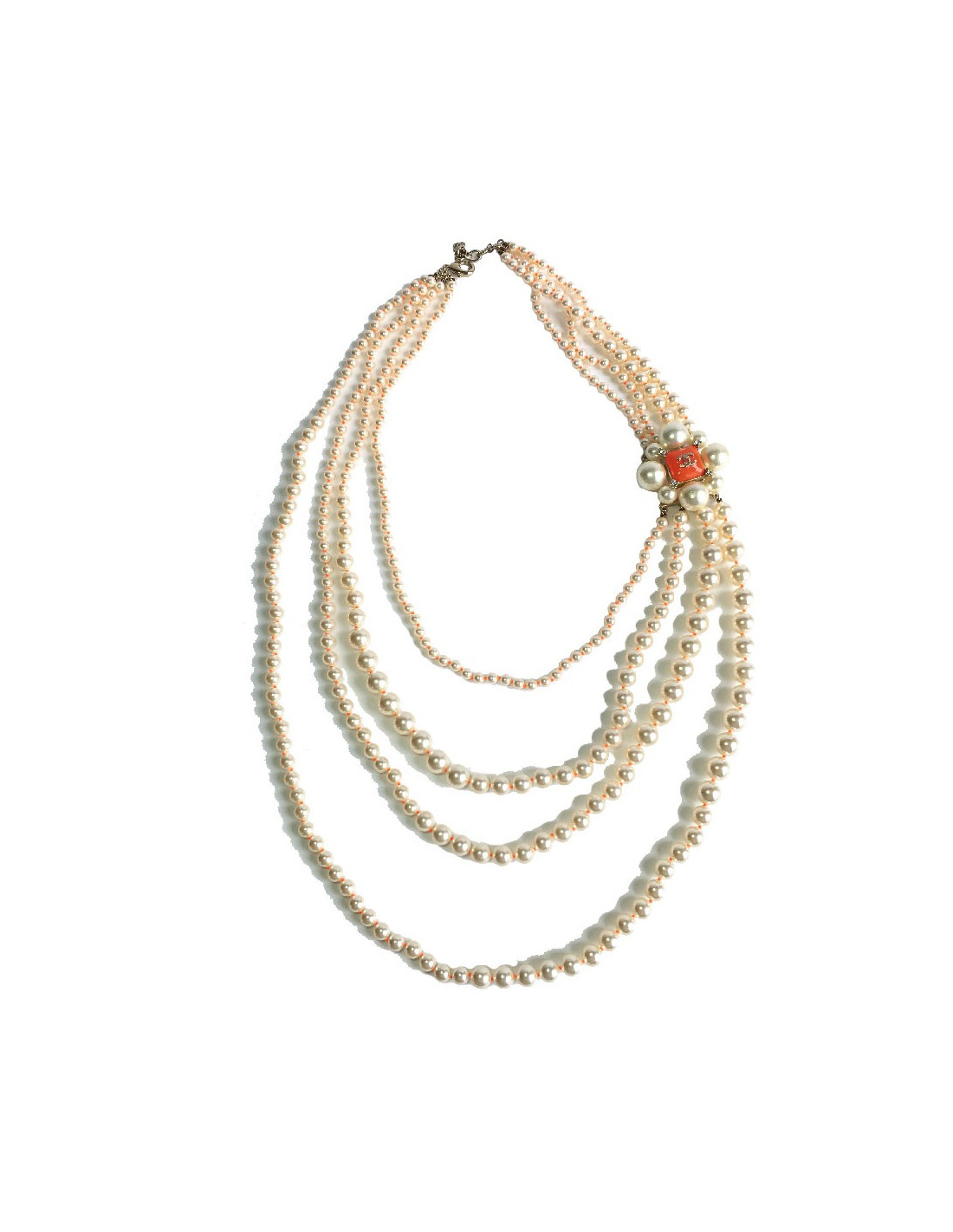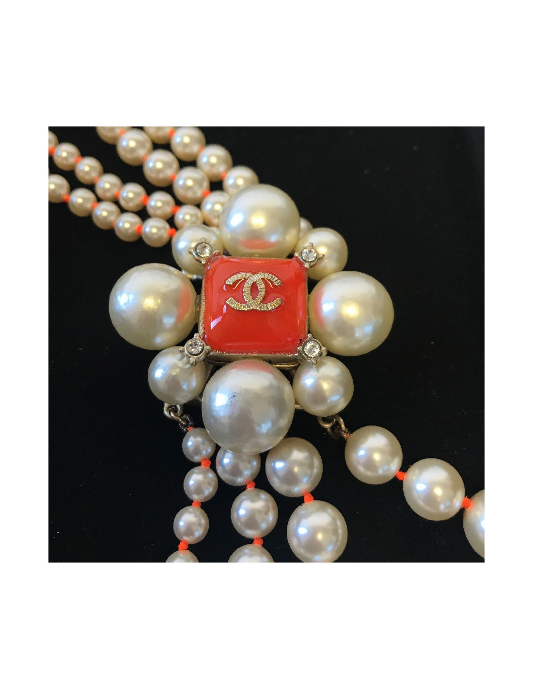 CHANEL necklace with 4 row of pearls and orange molten glass