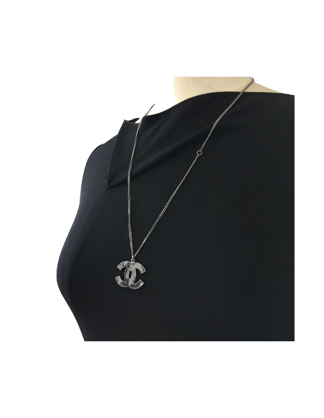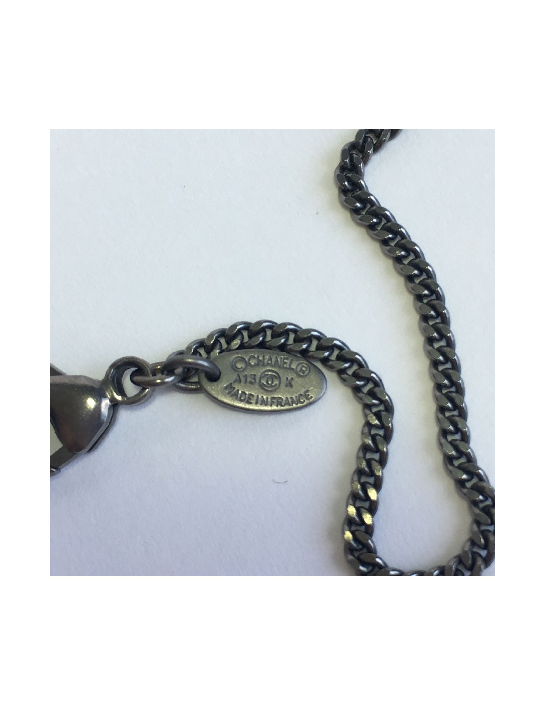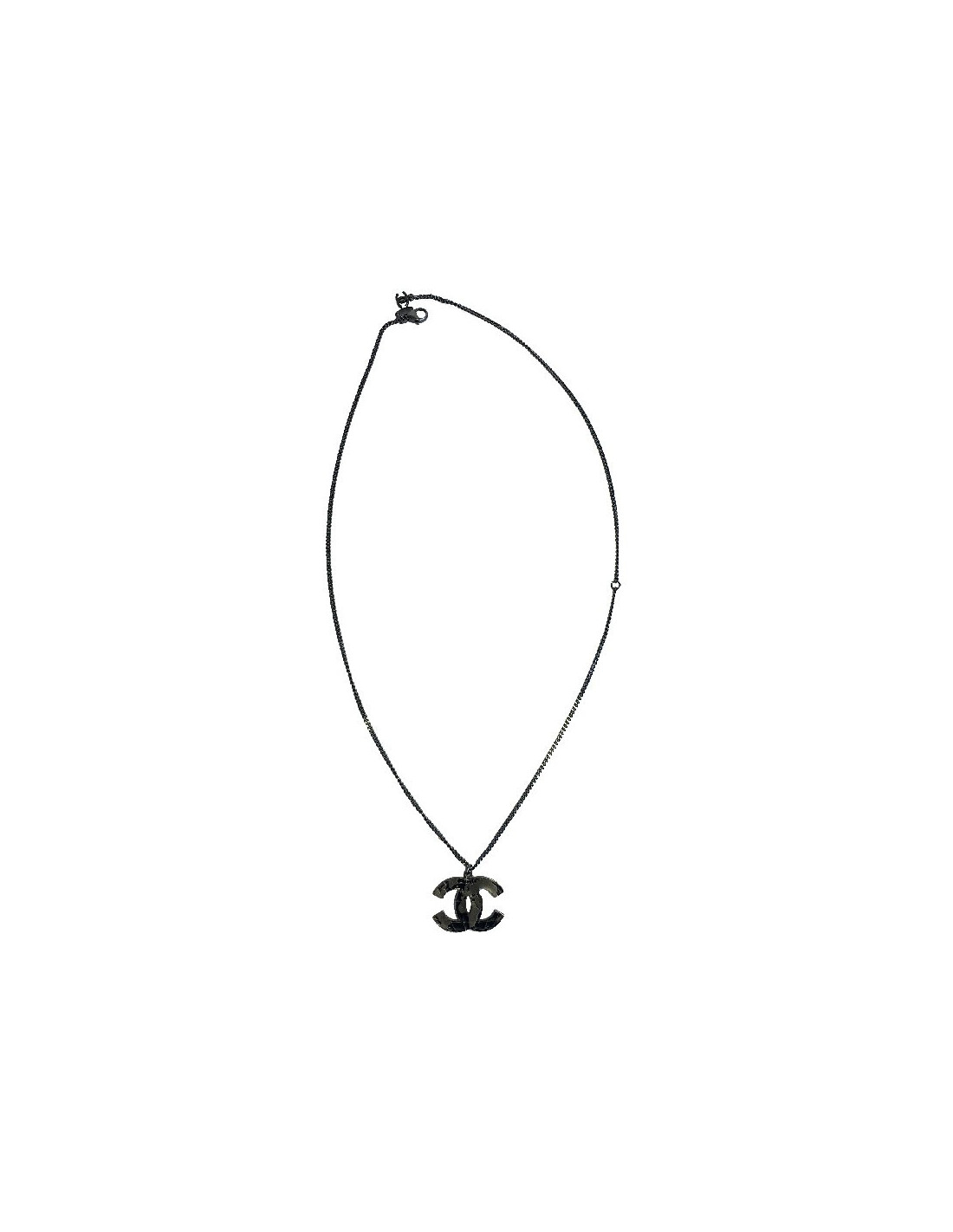 Chanel CC necklace in ruthenium metal. Pattern world map on the CC.