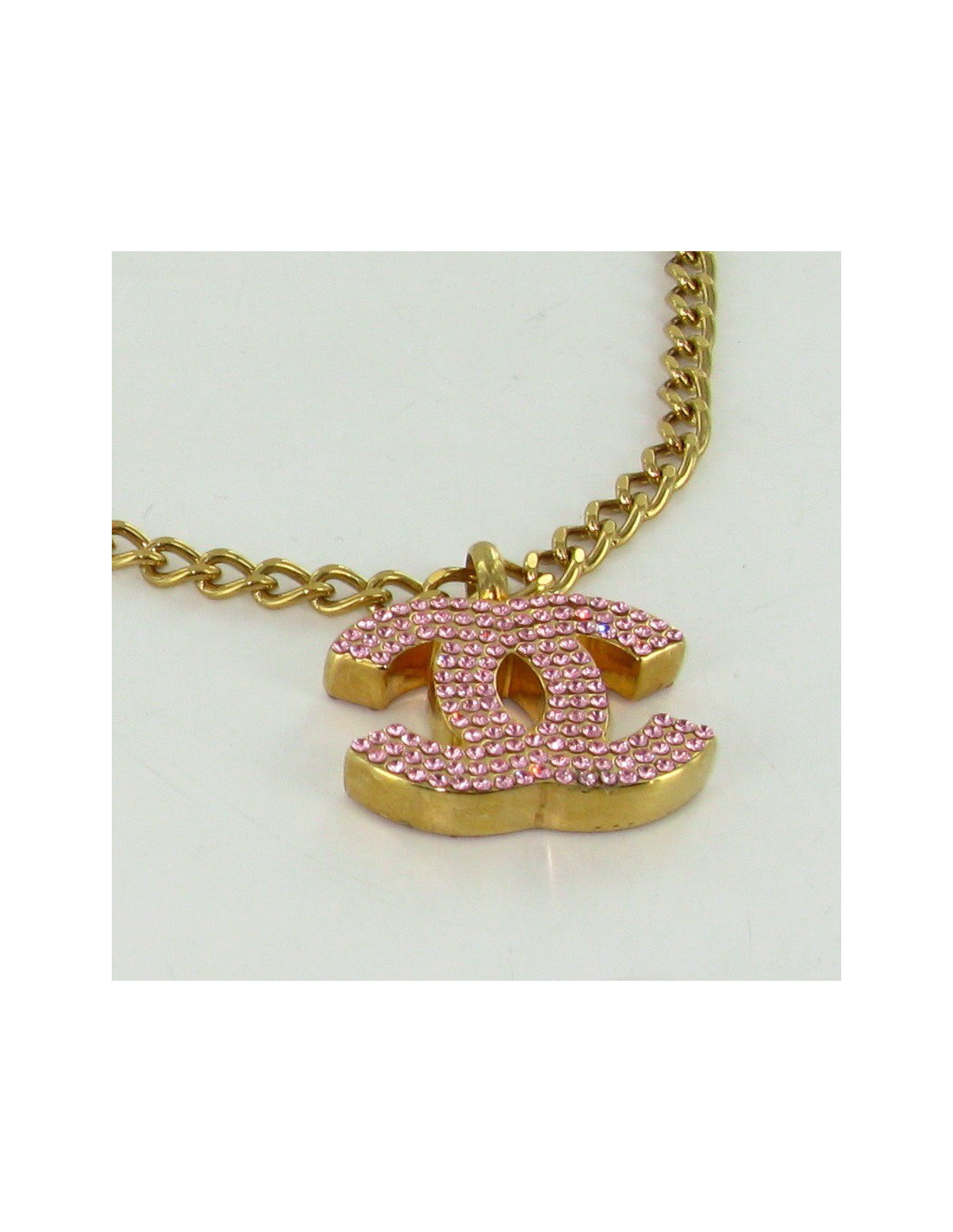 Superb ras neck CHANEL CC in rhinestone pink Swarovski. The string that measures 41.5 cm is in gilt metal. The beautiful swarovski logo CC Crystal pendant measures 3cm long, 2.5 cm in height and 0.8 cm thick.