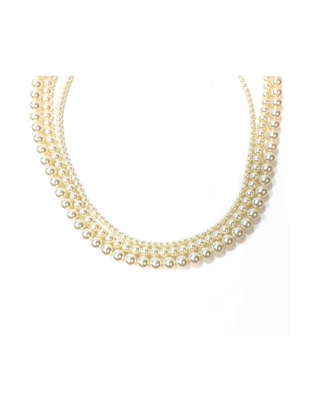 Last items in stock NECKLACES CHANEL multichain pearls and rhinestones long necklace CHANEL 32622 7,500.00 € CHANEL multichain pearls and rhinestones long necklace Condition : very goodMade in FranceGender : long necklaceMaterials : metal, rhinestones, pearly beadsColors : gold, mother-of-pearlMeasurements (adjustable) : 90-100 cmYear: Spring 2016Hardware : light goldDetails : multi-row necklace with Chanel coins and pendant, CC pendant on clasp Advantage Valois... Add to cart
