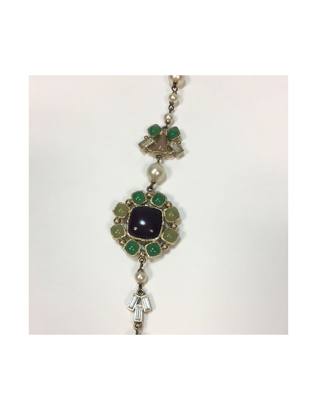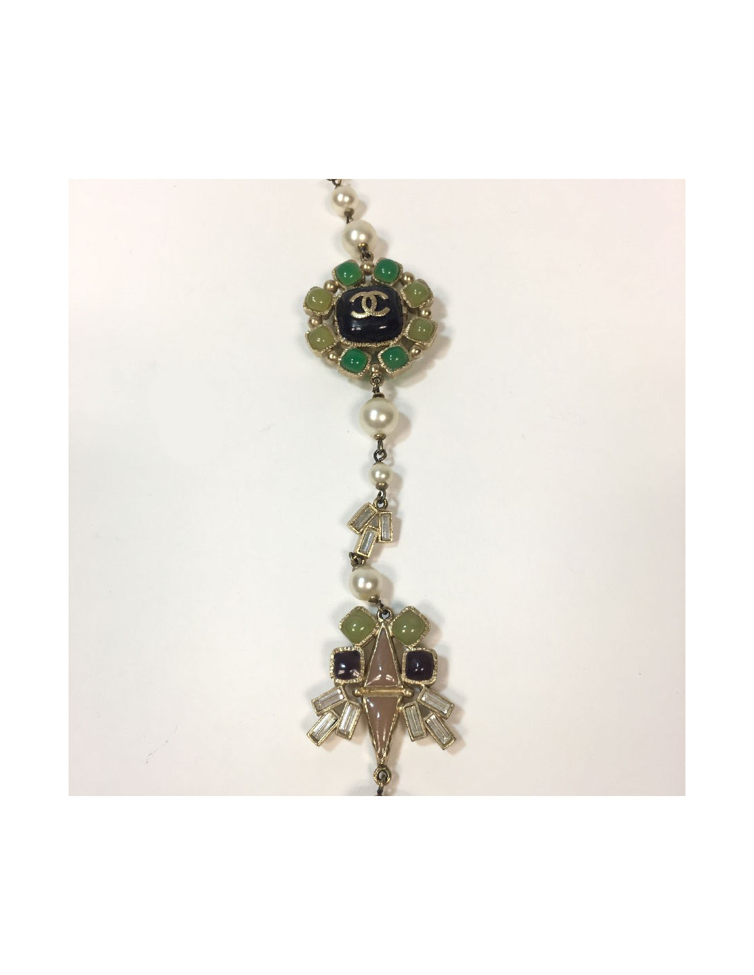 Sold NECKLACES Chanel glass beads breastplate CHANEL 27014 3,550.00 € Chanel glass beads breastplate multicolored Condition : goodMaterial : Glass beads, metalColor : multicolorDimensions : Total length: 54 cmBreastplate height: 5 cm Made In France View