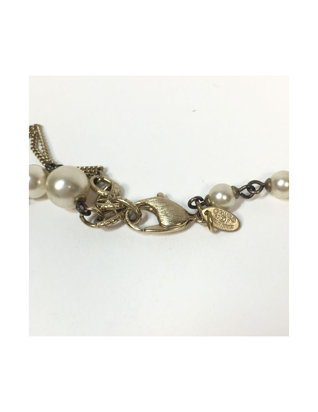 Last items in stock NECKLACES CHANEL couture ceremonial necklace CHANEL 33739 3,500.00 € CHANEL couture ceremonial necklace Condition : very goodMaterials : pearls, stones, resin, metalColors : black, burgundy, greyMeasurement : total length: 45 cmDetails : triple-row necklace with large pendant, CC on metal next to rhinestones. Baguette-cut rhinestones. Triple rows of stones and rhinestones. Add to cart