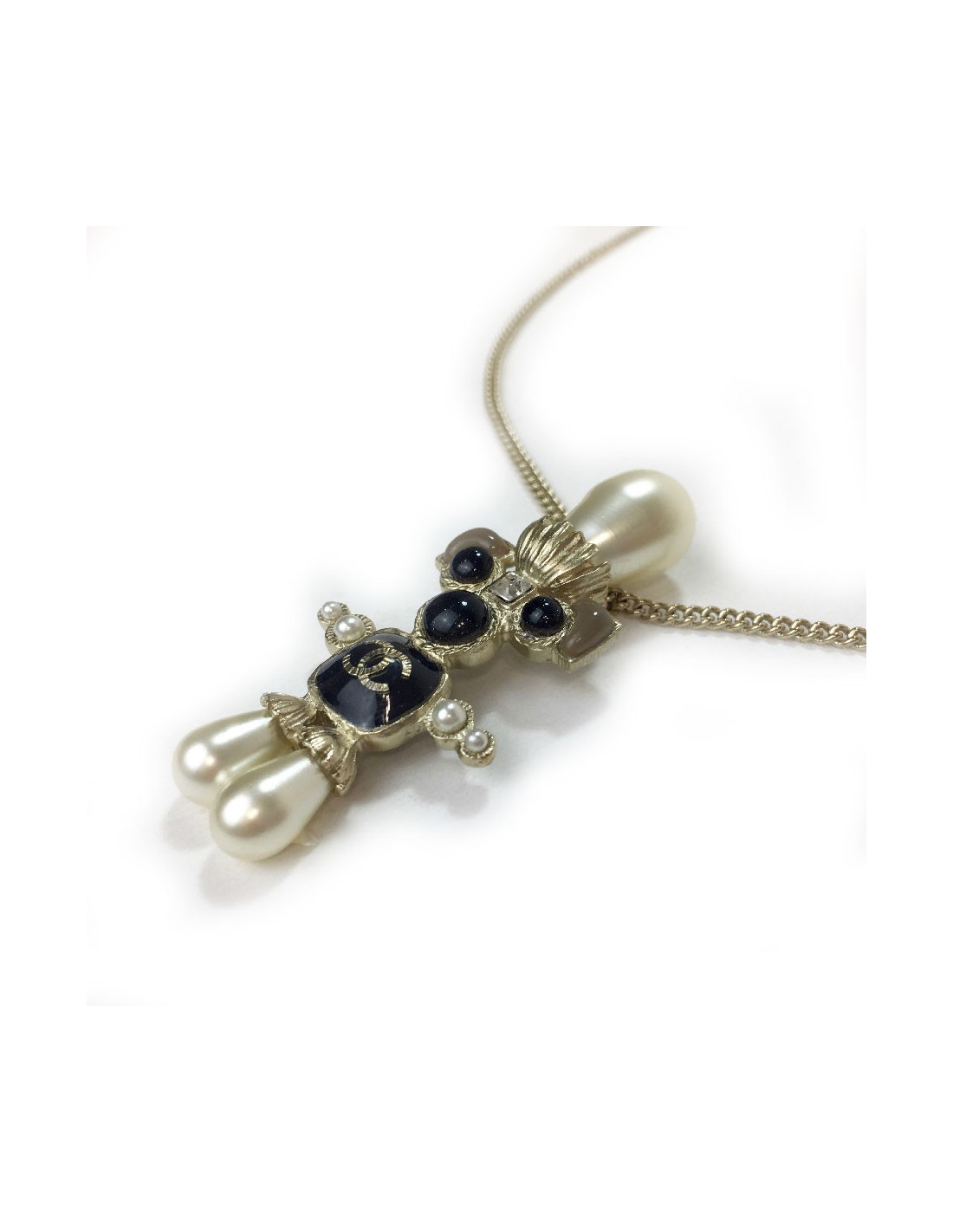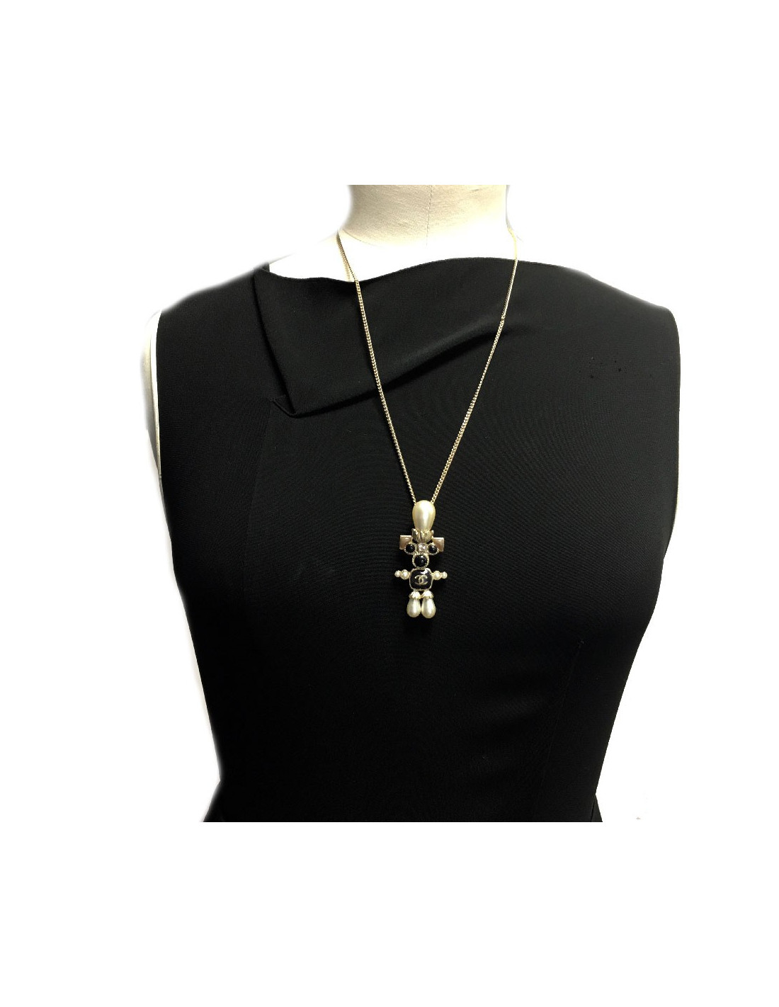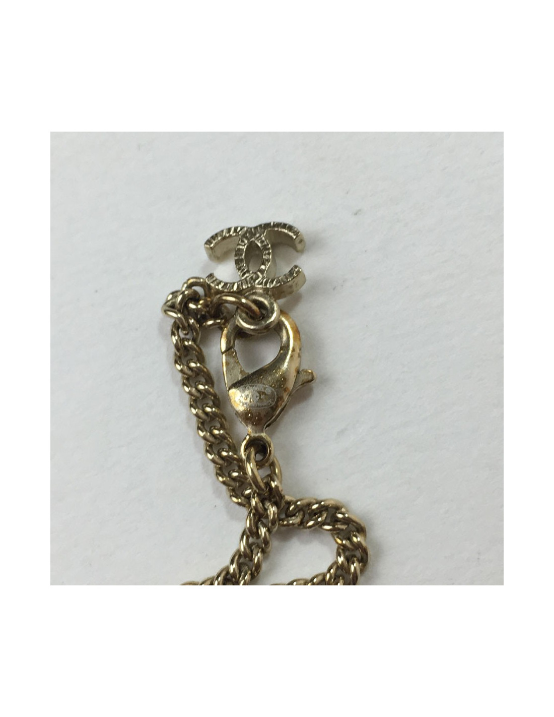 Last items in stock NECKLACES CHANEL pearl and gold bib necklace CHANEL 34334 2,850.00 € CHANEL mother-of-pearl beads and gold bib necklace Condition : very goodMade in FranceMaterials : metal, pearly beadsColor : goldMeasurements : length (adjustable) up to 40 cm, pendant : 15 cmHardware : gold finish metalStamp : yesYear : Spring 2002Details : CC pendant on the clasp, rigid choker with dangling beaded chains. Advantage Valois Vintage Paris... Add to cart