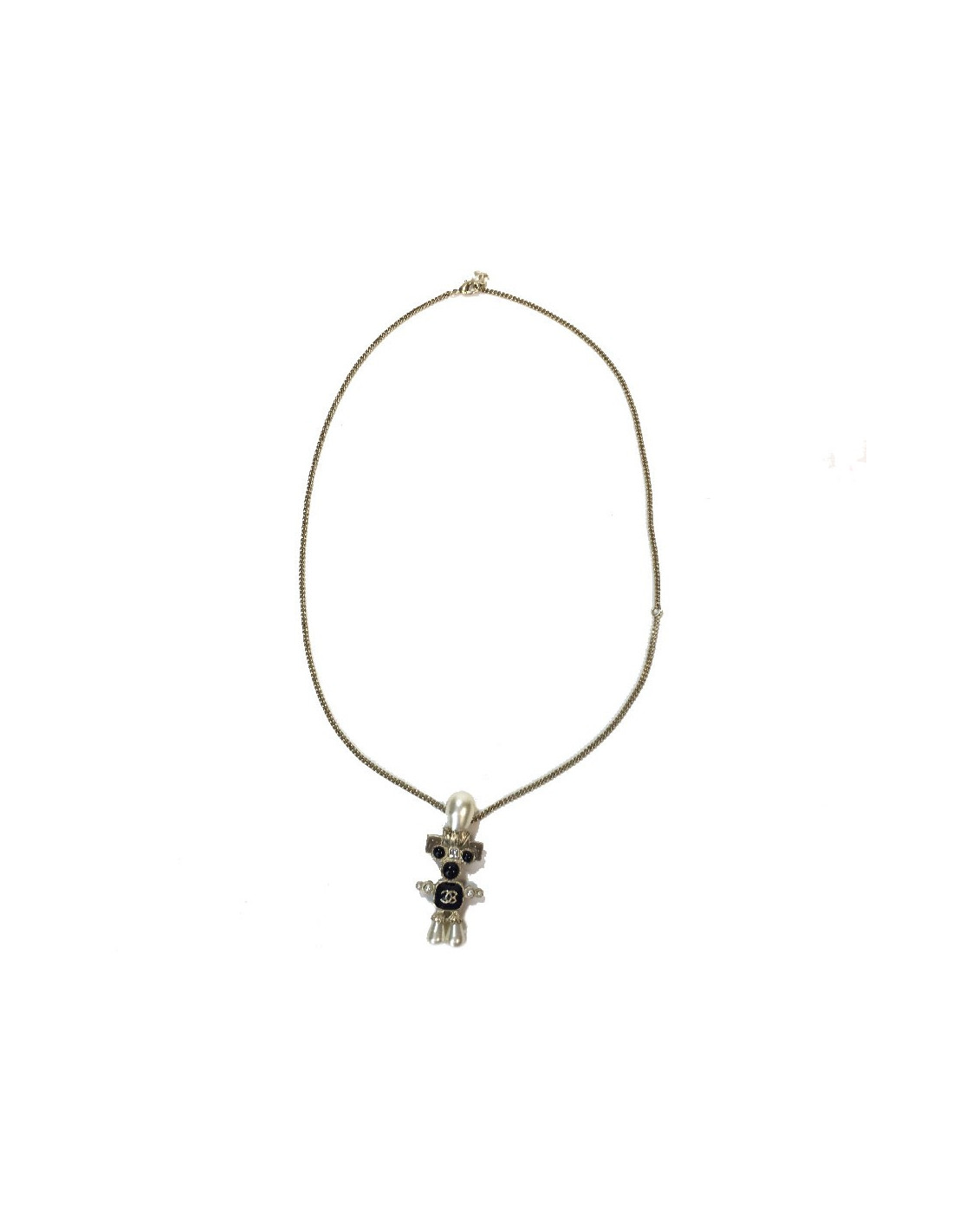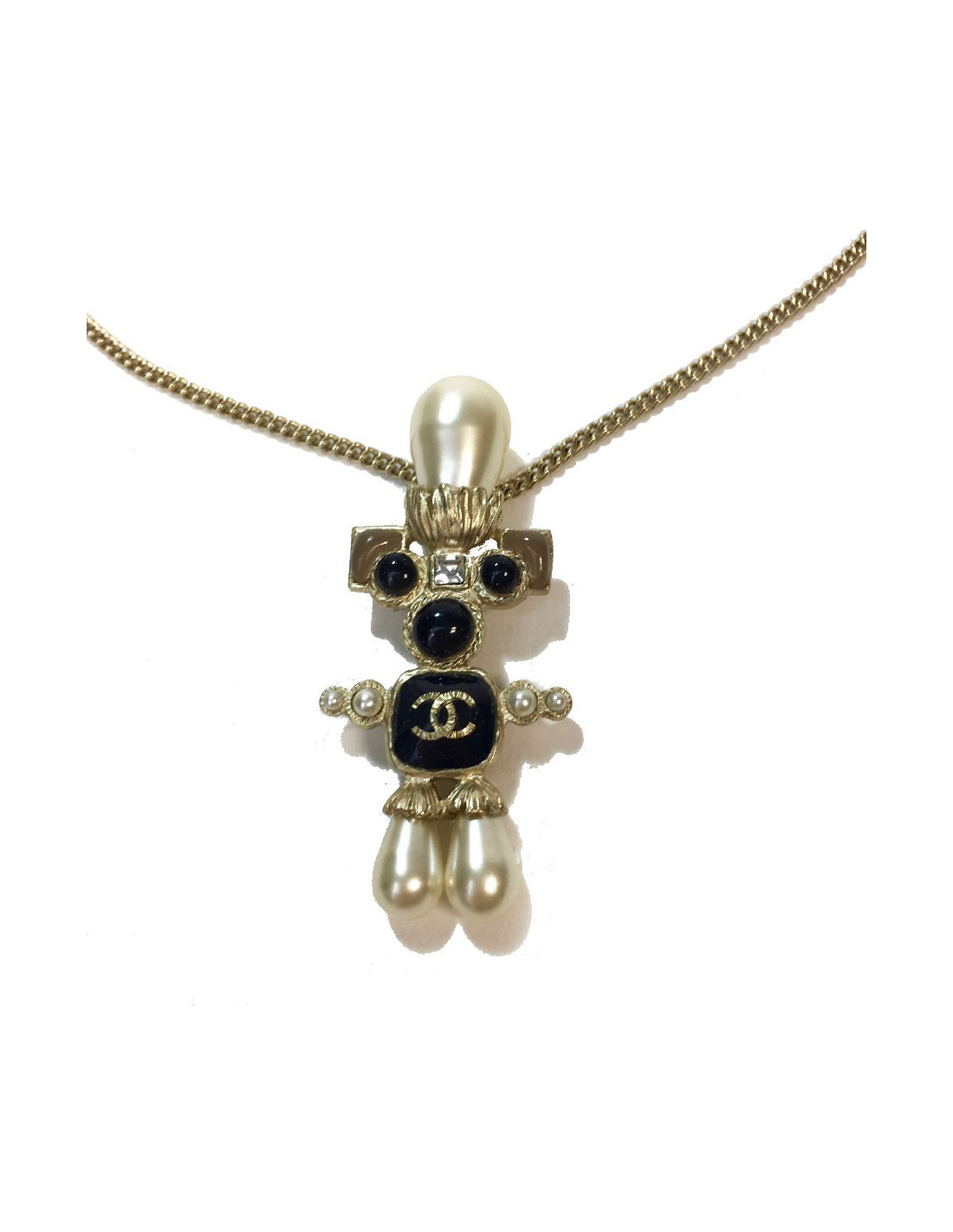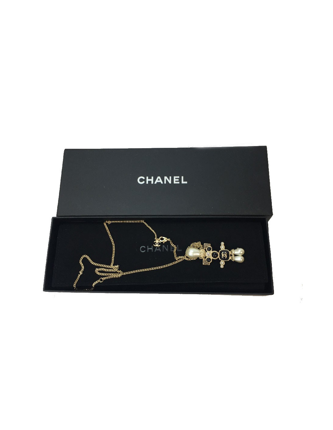 Last items in stock NECKLACES CHANEL pearl and gold bib necklace CHANEL 34334 2,850.00 € CHANEL mother-of-pearl beads and gold bib necklace Condition : very goodMade in FranceMaterials : metal, pearly beadsColor : goldMeasurements : length (adjustable) up to 40 cm, pendant : 15 cmHardware : gold finish metalStamp : yesYear : Spring 2002Details : CC pendant on the clasp, rigid choker with dangling beaded chains. Advantage Valois Vintage Paris... Add to cart