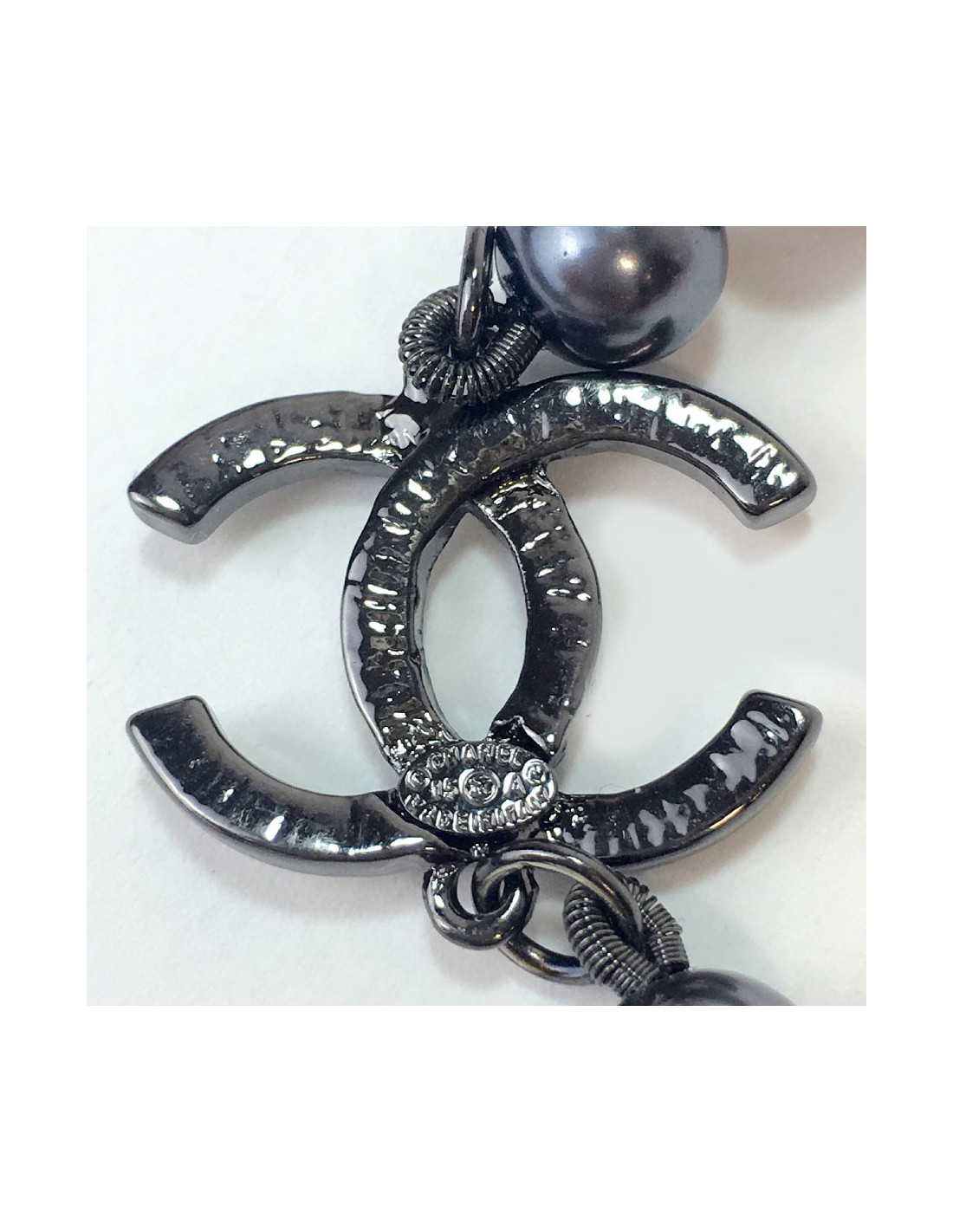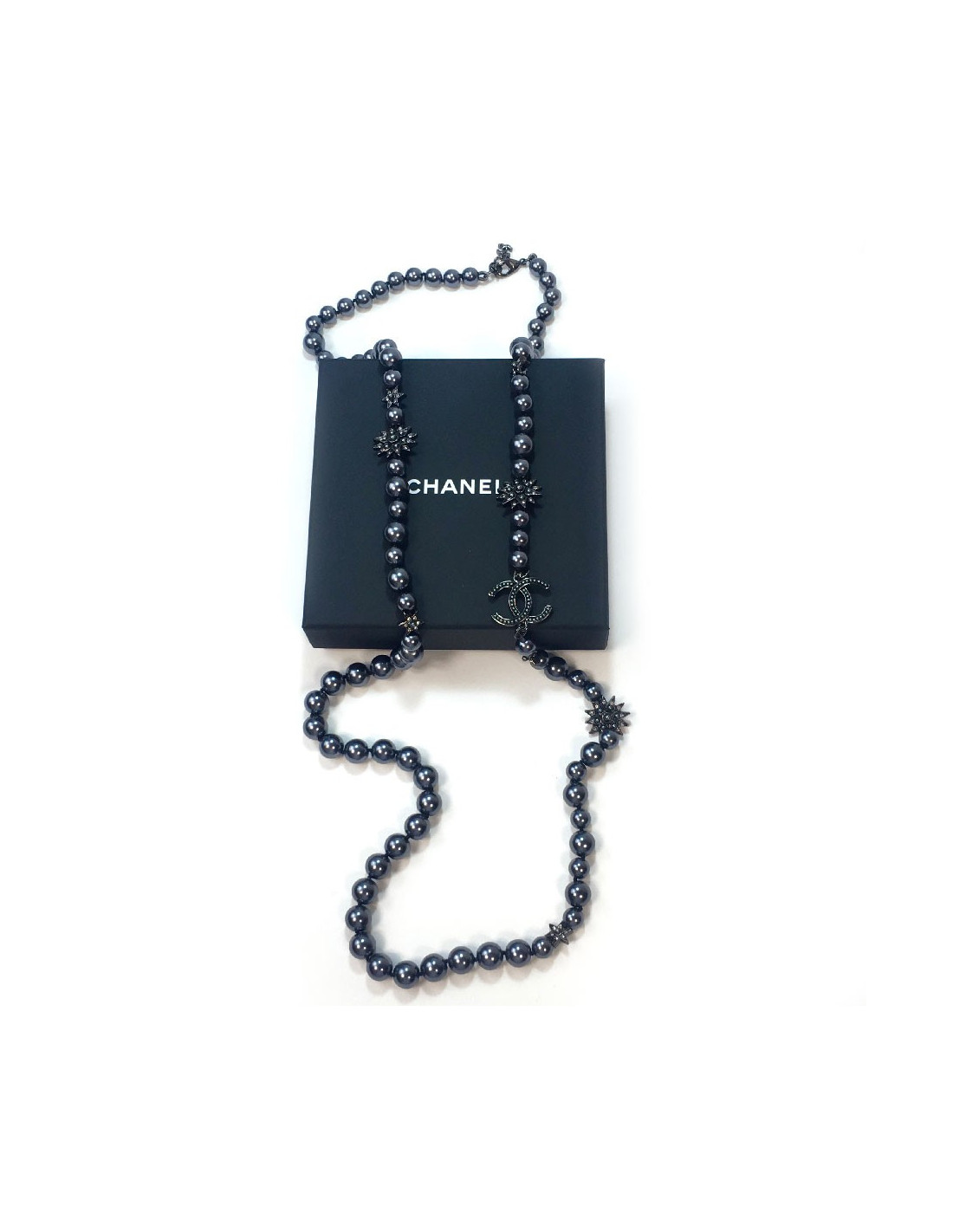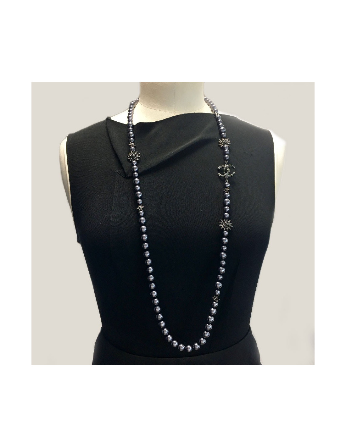 Chanel long necklace in gray pearls