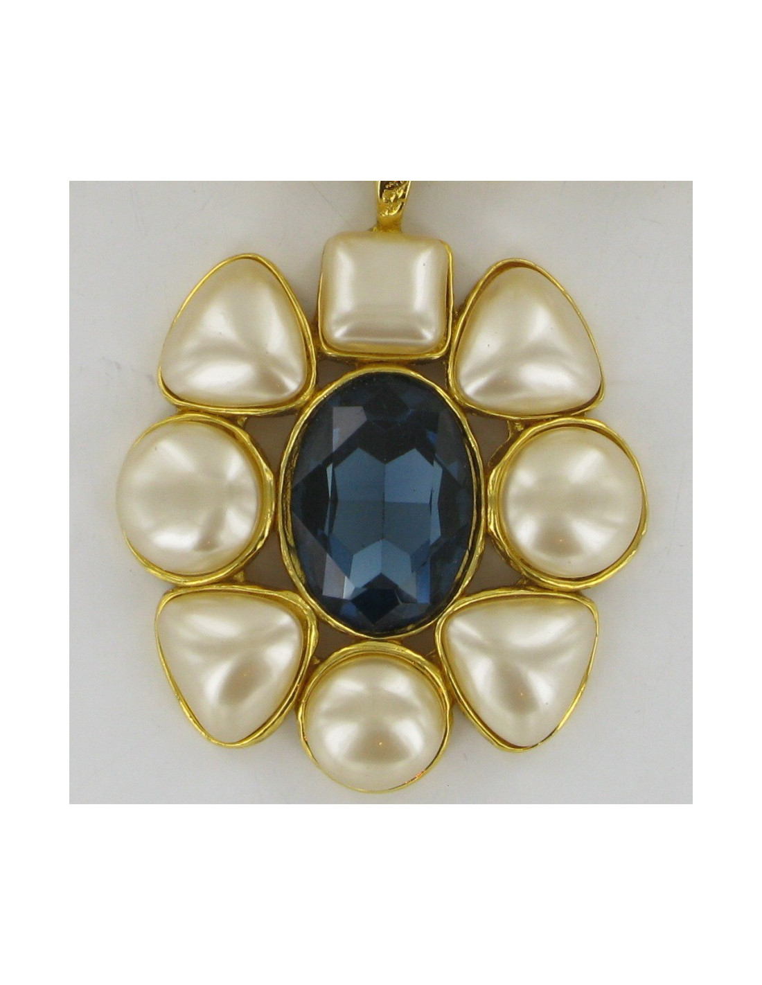 Golden jewel set with paste of pearly glass and a blue cabochon Swarovski beads