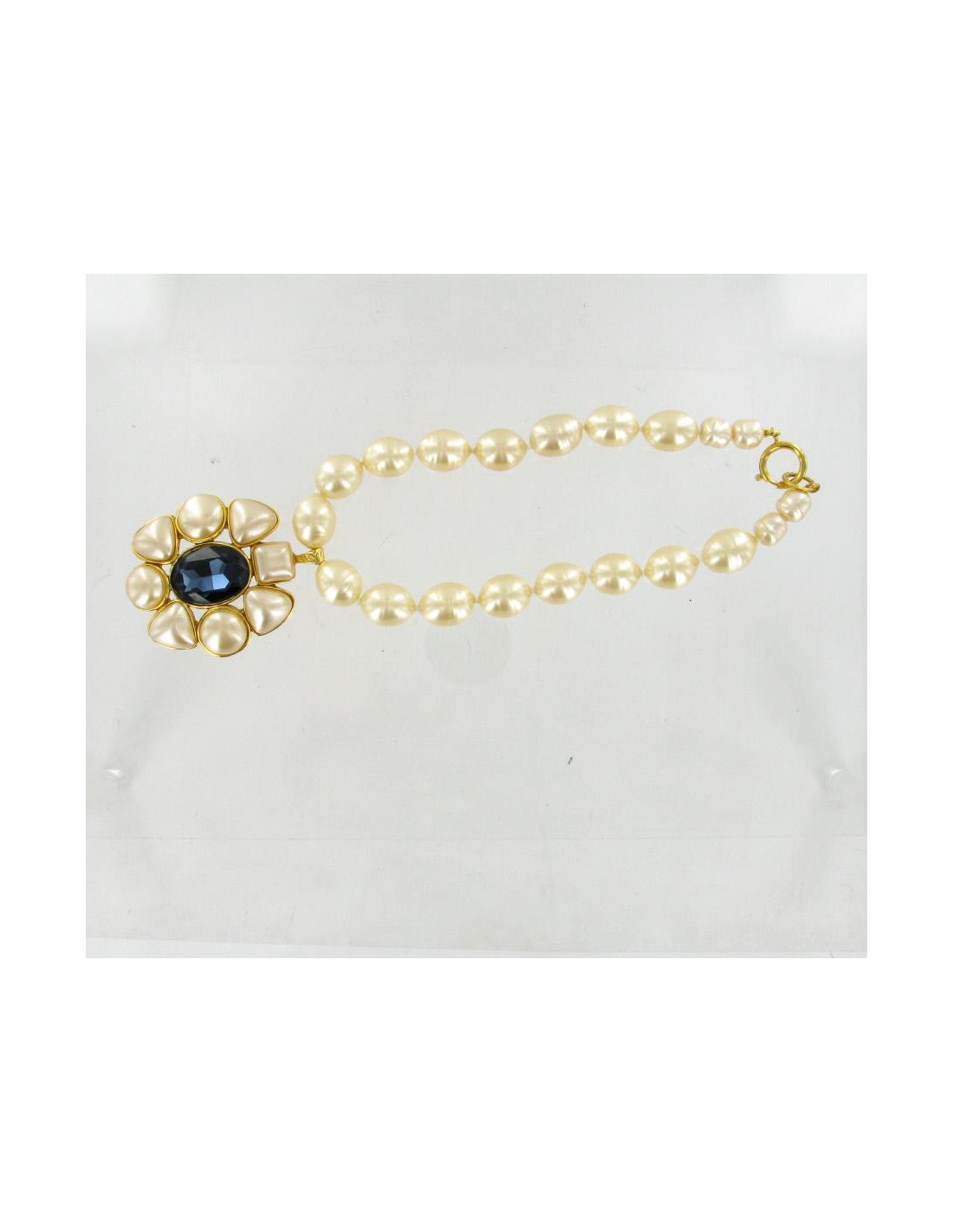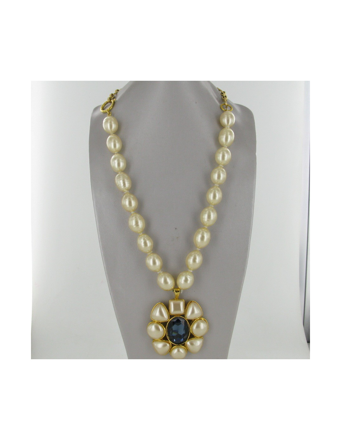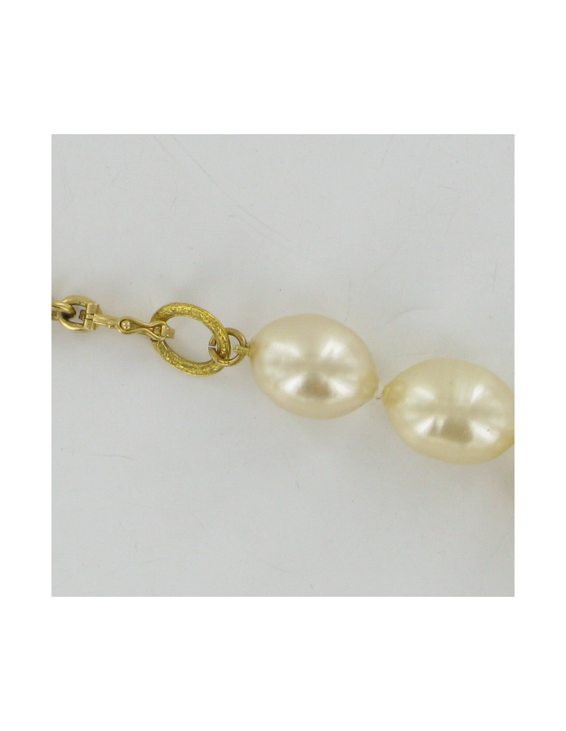 Sublime stitching vintage CHANEL necklace consisting of a chate big Pearly glass paste beads and golden. Each bead is handmade (french know-how)