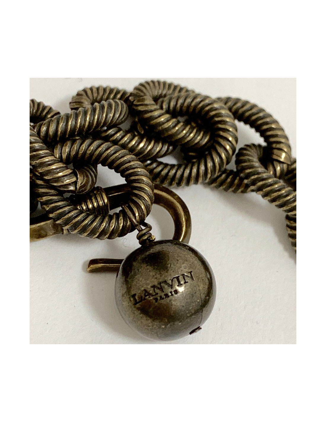-50.00 € VC1333974 / LU69533981573 NECKLACES LANVIN iconic 'Kiss' gilded metal necklace LANVIN 16147 600.00 € 650.00 € LANVIN Collector "kiss" gilded necklace Condition: never wornMaterials: metal, rhinestonesColors: gold, copperHardware: 18K gold plated metalMeasurements: width: 12 cm - height of K 9 cm - length of chain: 38 cmDetails: LANVIN "Kiss" necklace with a rhinestone on the "I", in 18-carat gold-plated metal. The chain is copper-colored. Made in France. Never... Add to cart