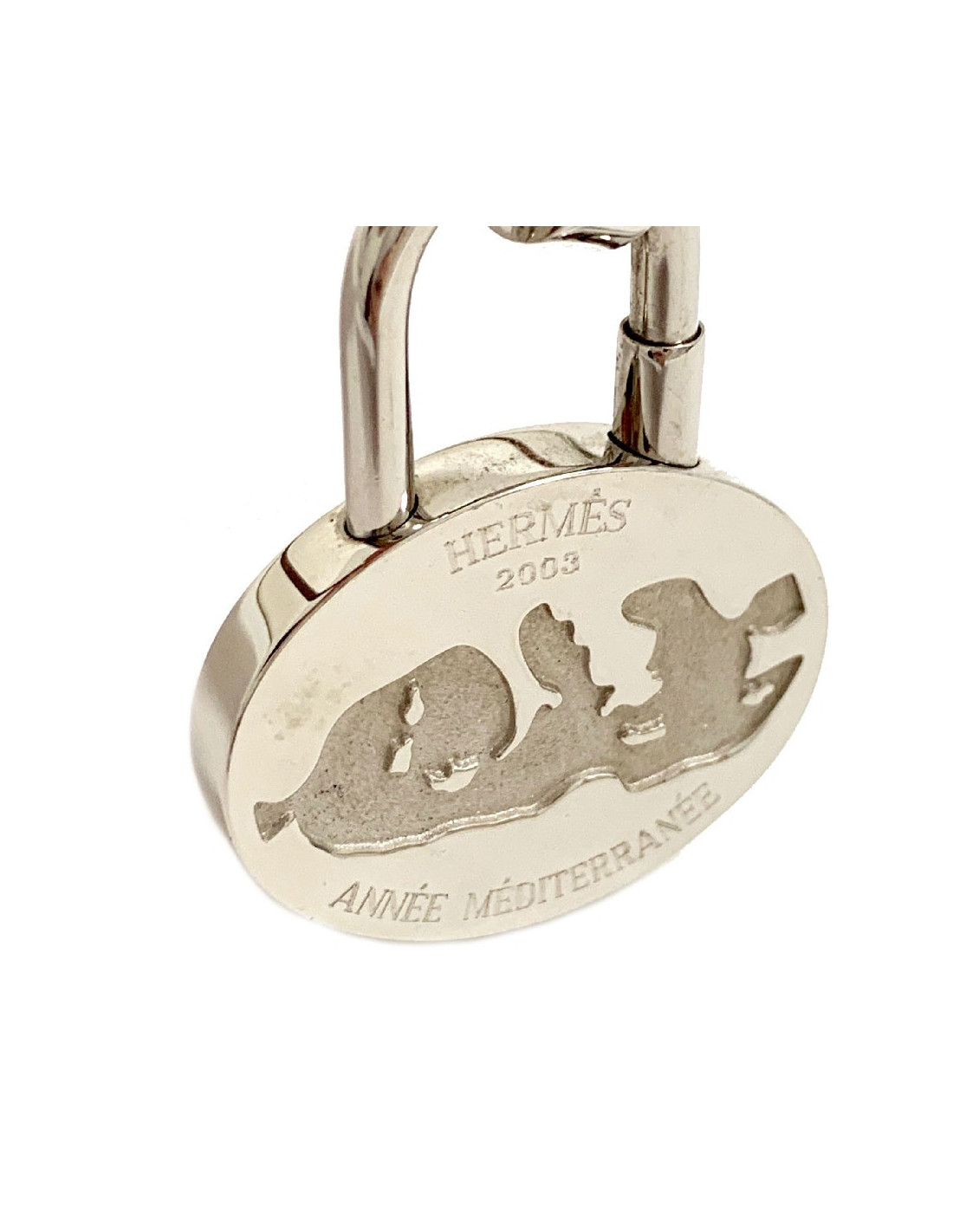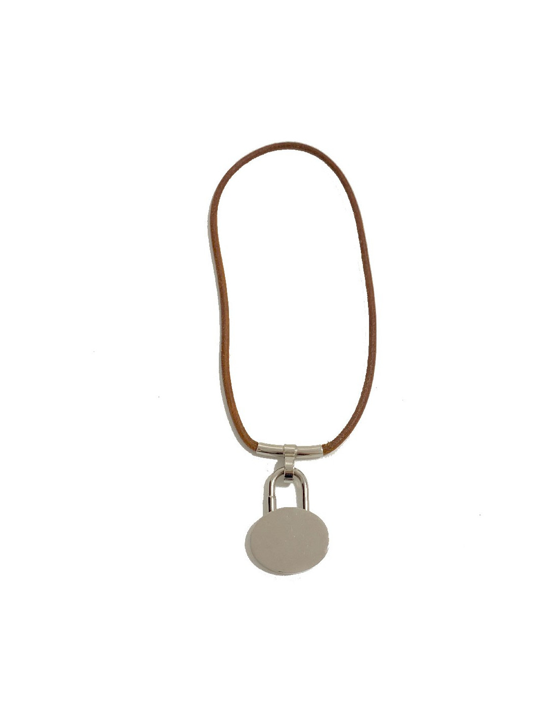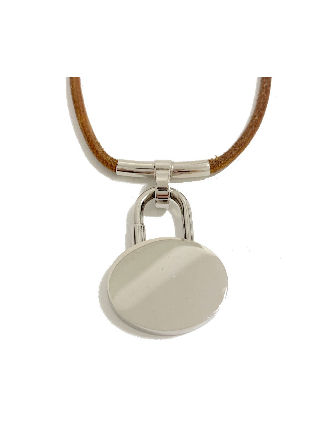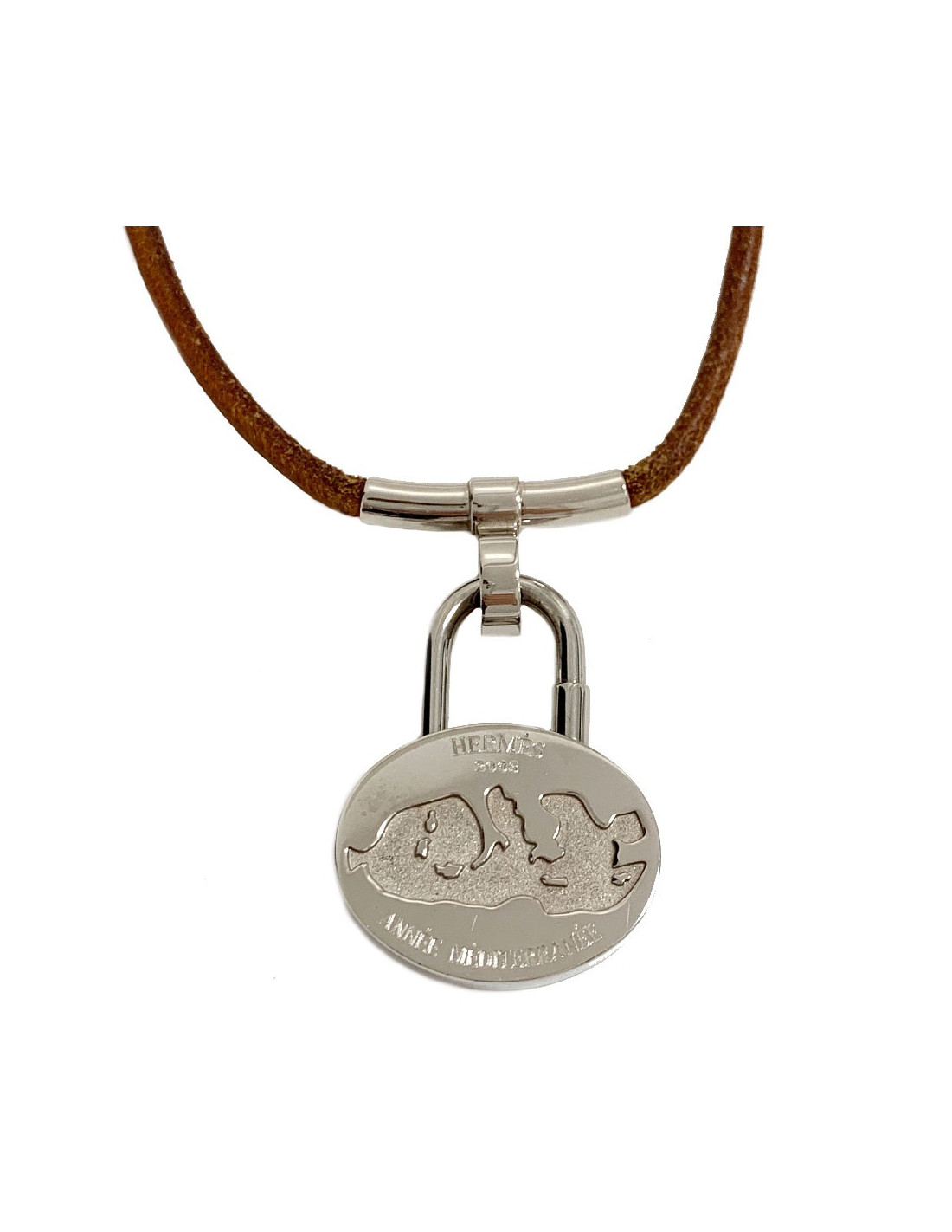 Beautiful Cadenas necklace by HERMES. It was produced in 2003 to celebrate the Year of the Mediterranean. The pendant is in silver-plated palladium-plated metal. The link is in brown leather. The pendant and lanyard are signed HERMES.
