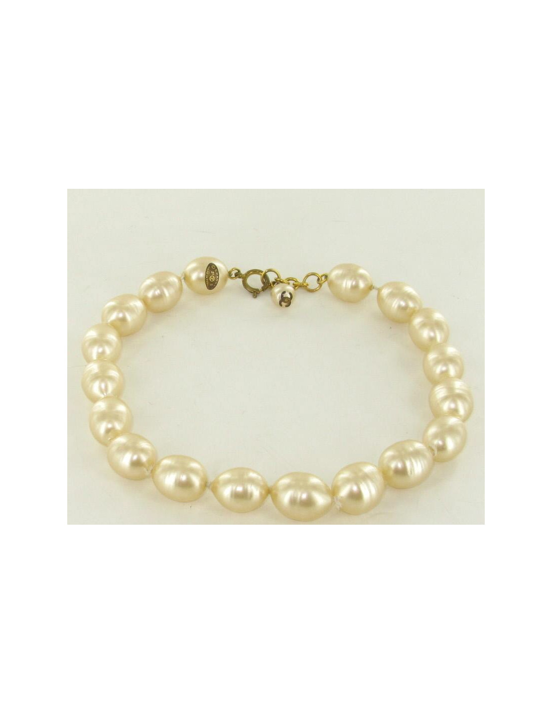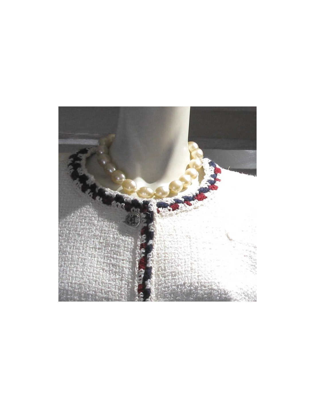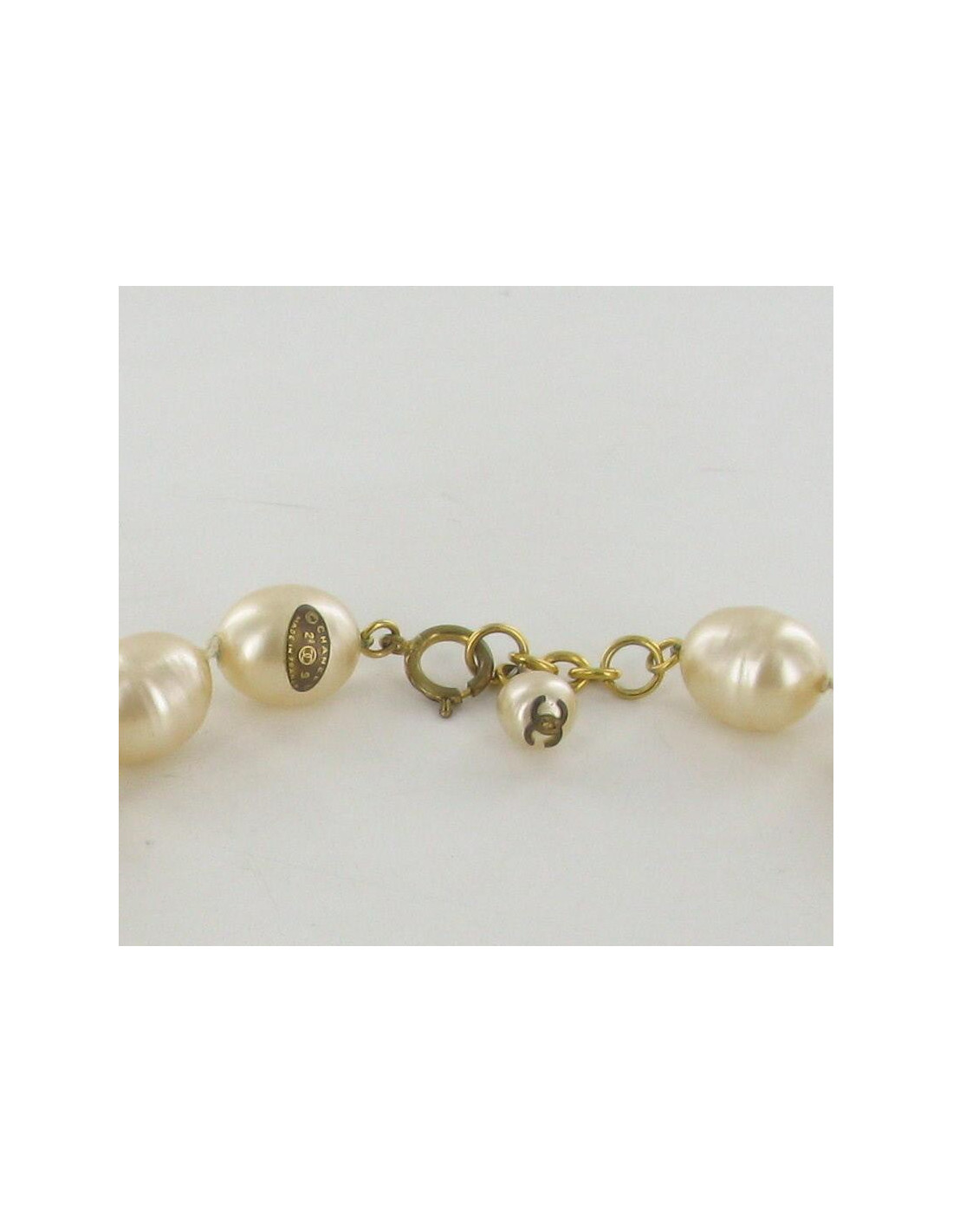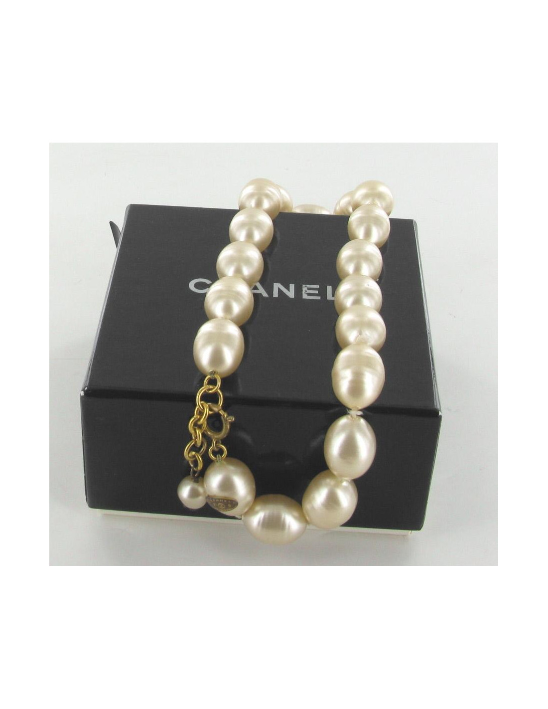 Ras neck (shocker) couture CHANEL necklace decorated with Pearly glass paste beads say Baroque (olive-shaped). This necklace is handmade. One of the pearls is set with a gold metal plate where he is registered "CHANEL MADE IN FRANCE". The necklace is in very good condition, comes in its box.