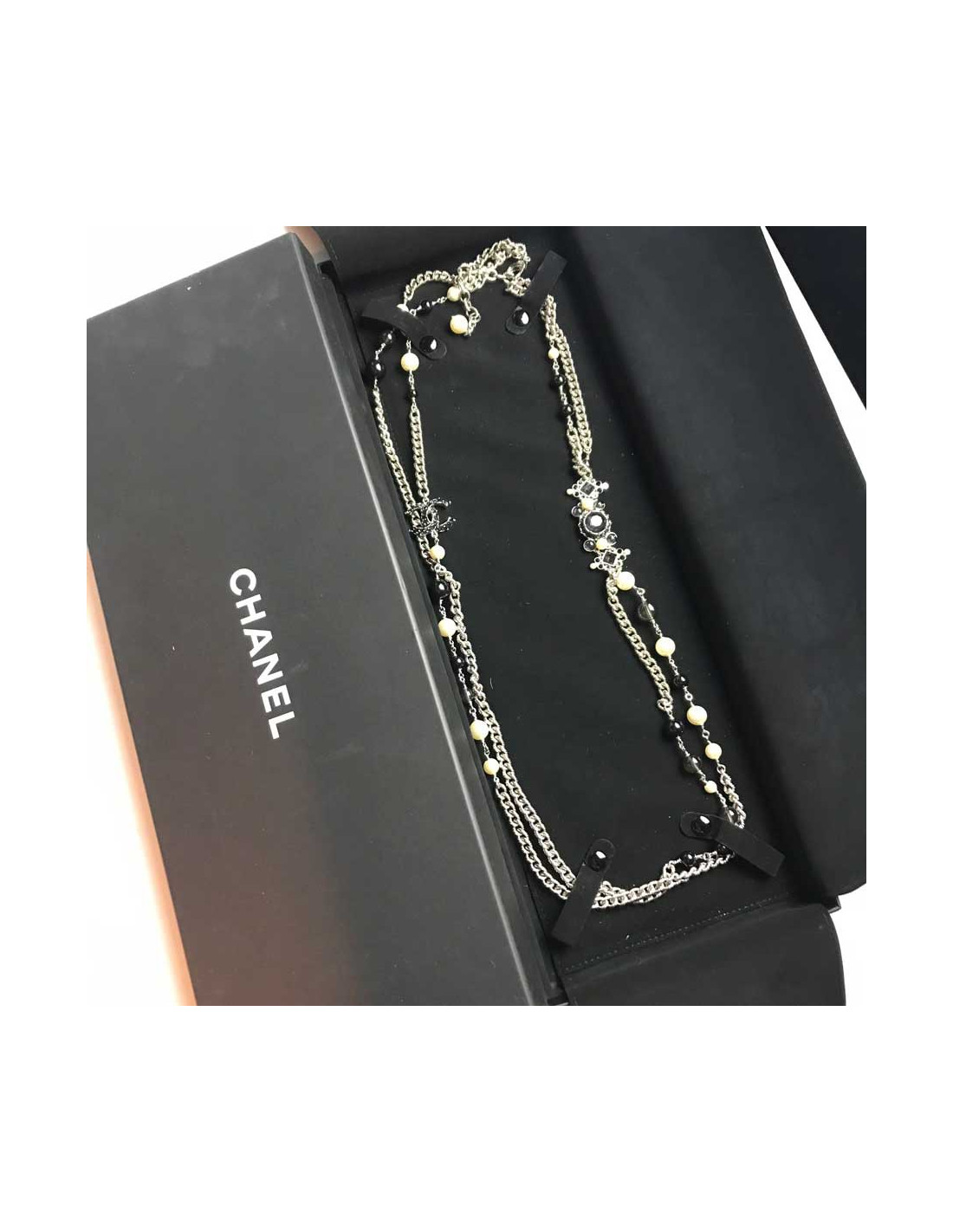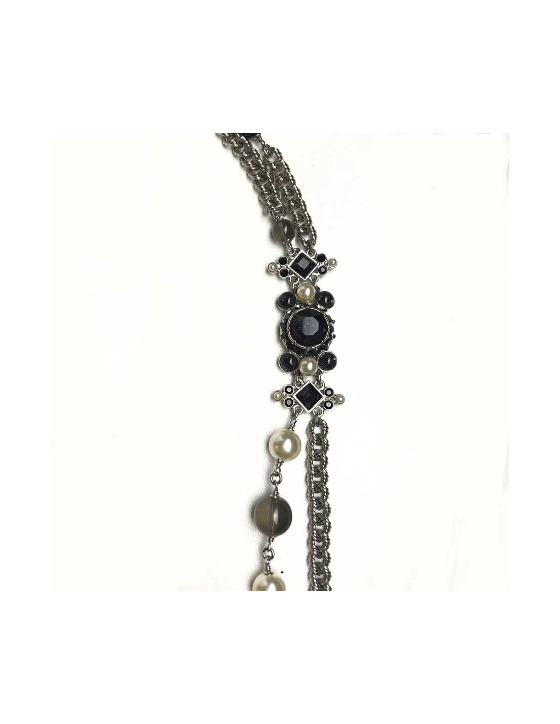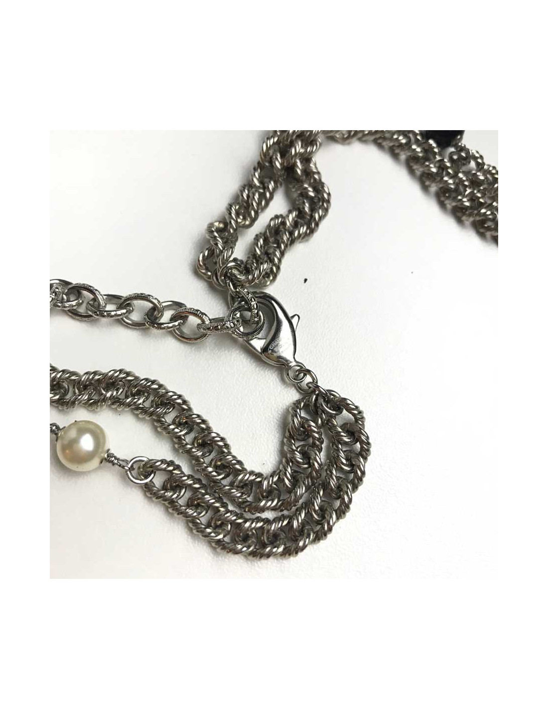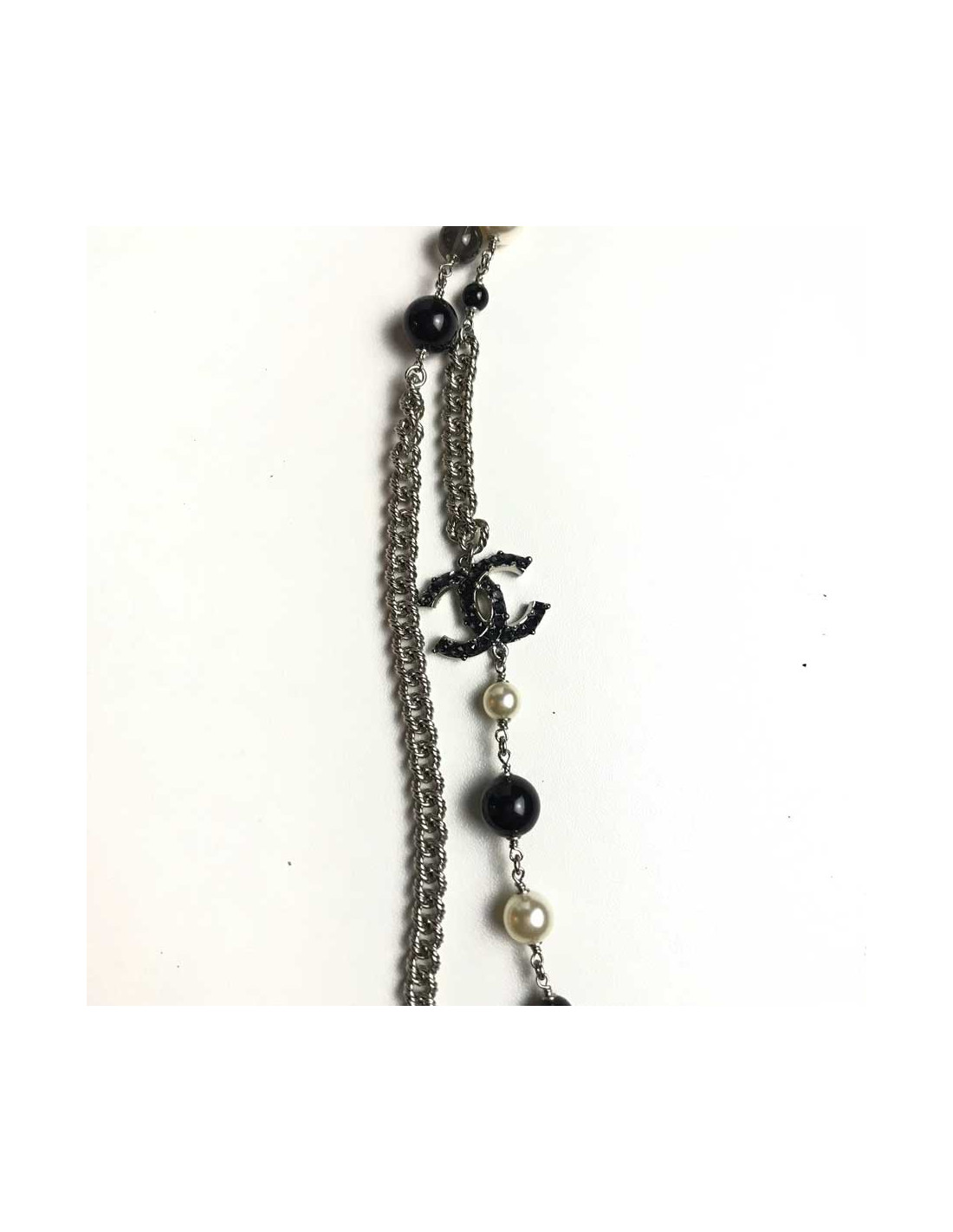 Last items in stock NECKLACES CHANEL molten glass beads and silver leaf insert necklace CHANEL 28490 900.00 € CHANEL molten glass beaded necklace Condition: descentMaterials : molten glass, silverColor : silverMeasurements : neck circumference (adjustble) 53- 58 cmYear : 2000'Hologram: no AUTHENTICITY CERTIFIED by our expert team since 1998. Add to cart