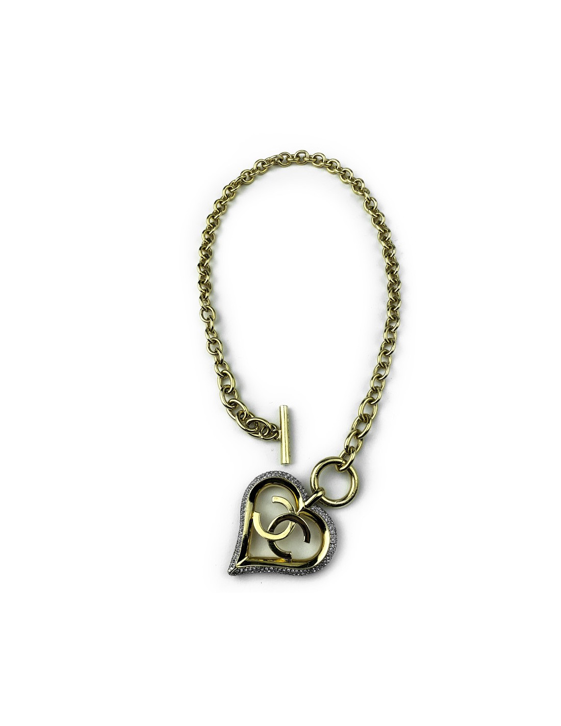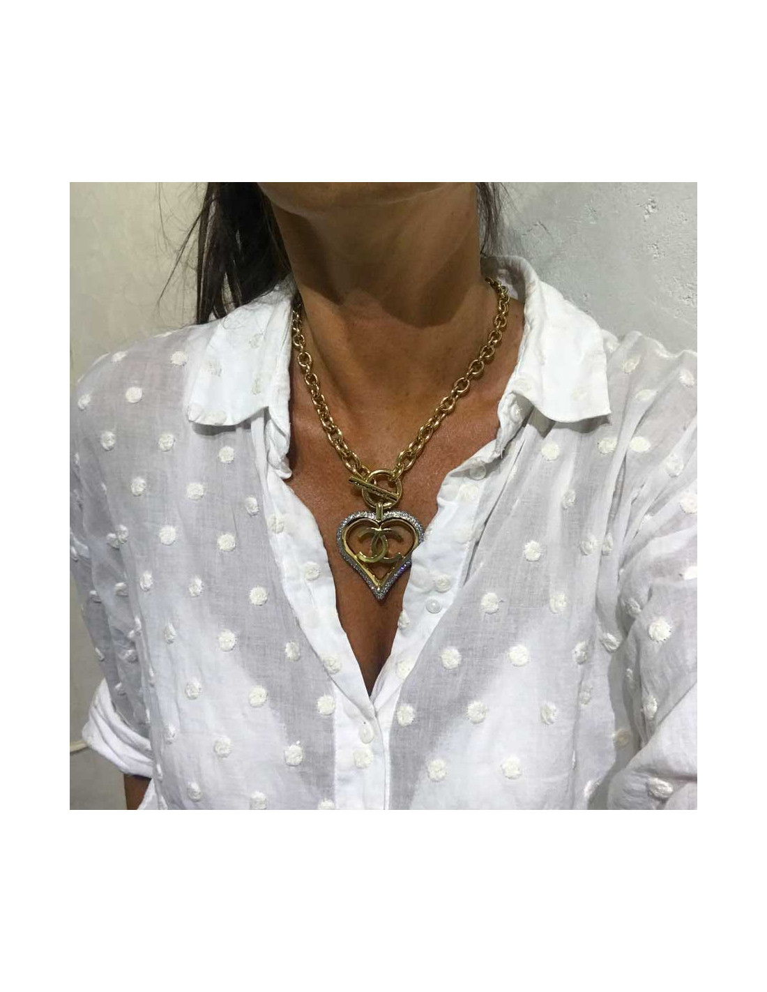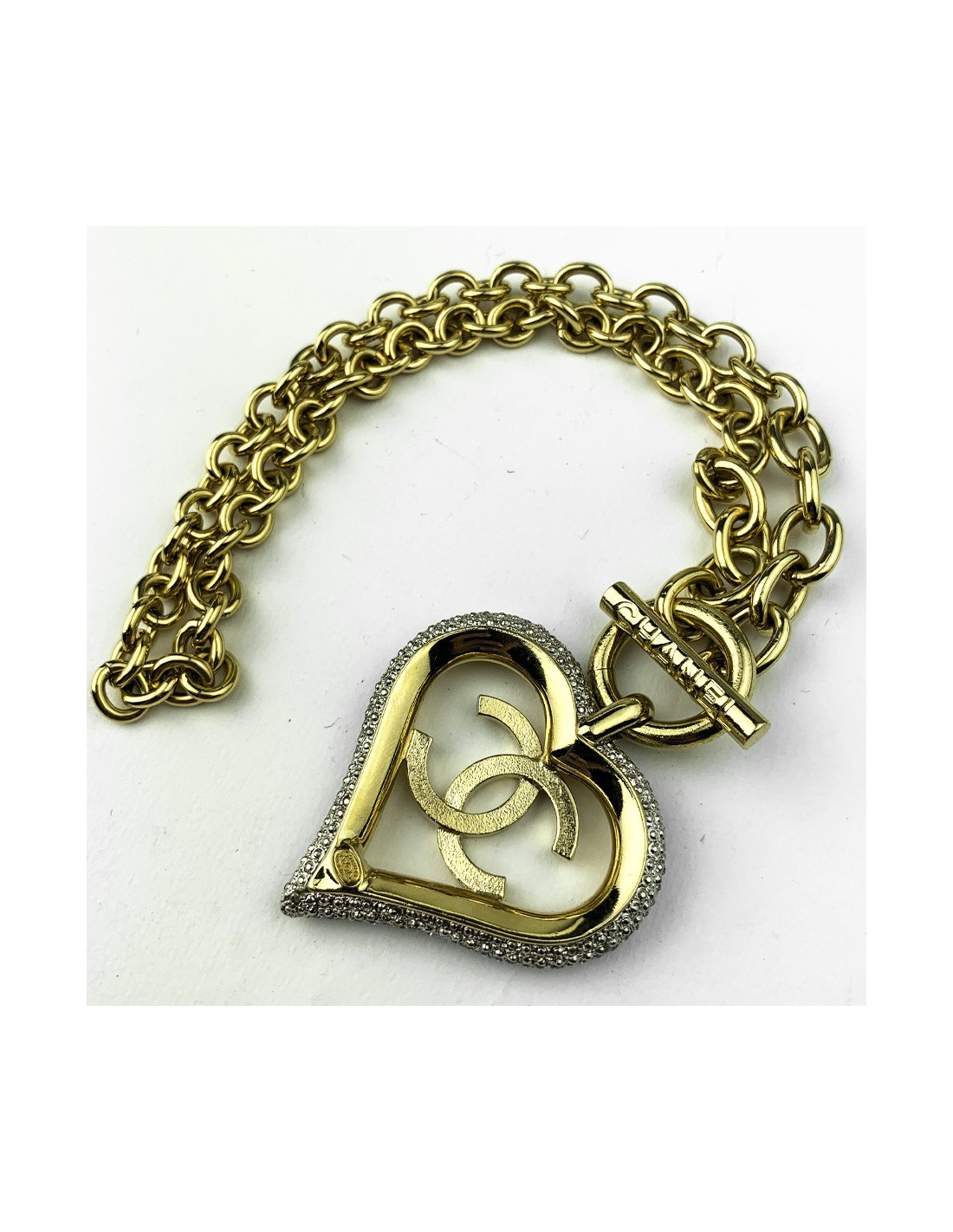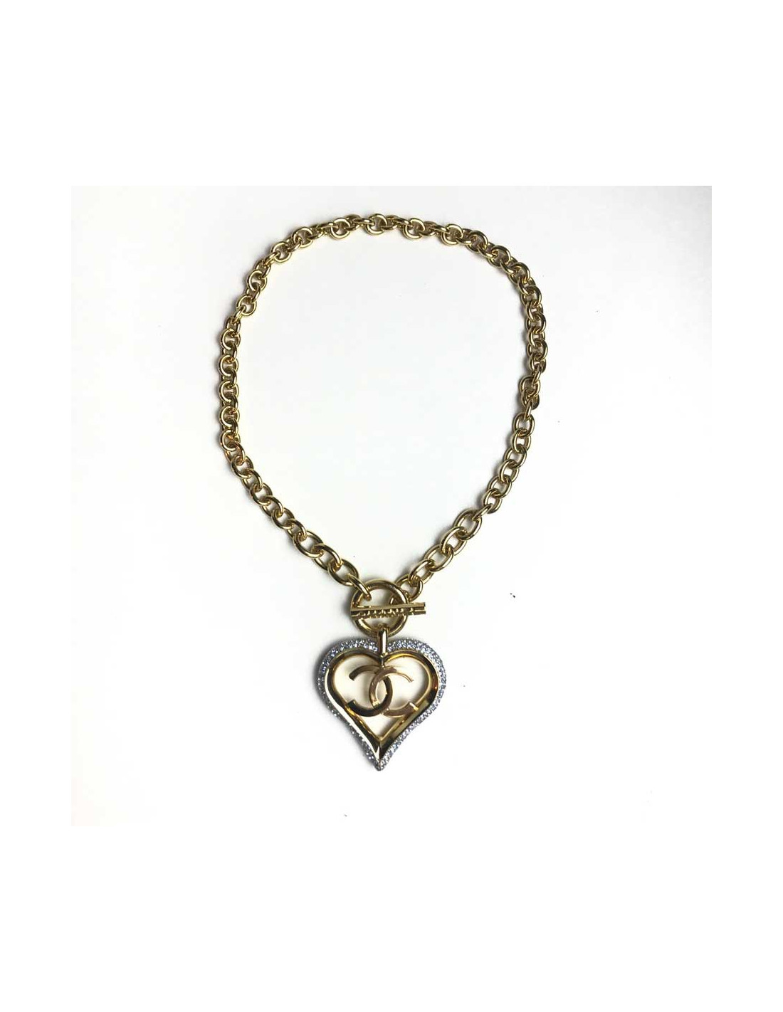 Sold NECKLACES CHANEL Vintage Heart Necklace CHANEL 34404 1,450.00 € Stunning Chanel golden heart necklace from 1995 Condition: very goodMade in FranceMaterials: metal Color: goldDimensions: heart: 4x4cm, chain: 60cmHardware : golden metalYear : spring 1995 View