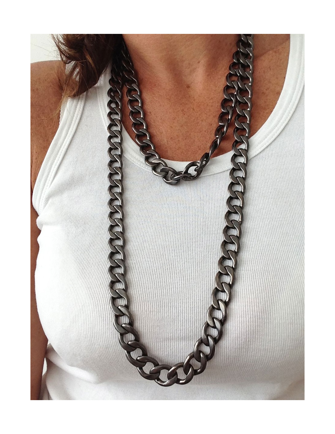 Large and long necklace chain Marguerite de Valois, rock room, totally in tune with the times, blackened Silver (ruthenium).