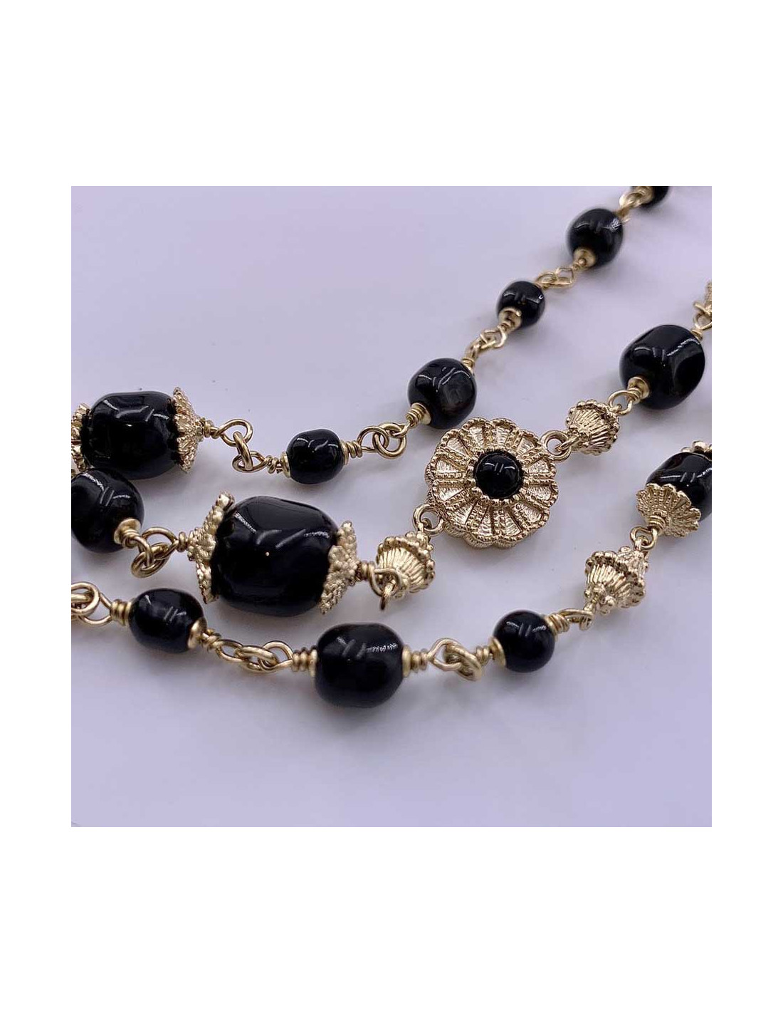 New Last items in stock NECKLACES copy of CHANEL Black Chestplate Necklace CHANEL 42112 12,000.00 € Beautiful CHANEL chestplate necklace in black and silver. A wonderful piece of jewelry! Condition: very goodMade in FranceMaterials: Metal, resinColors: silver, blackDimensions: total neck length 46cm, middle neck length 20cmStamp: 20cmYear: 2009Hardware: silver metal Valois Vintage + : delivered in its original CHANEL box Add to cart