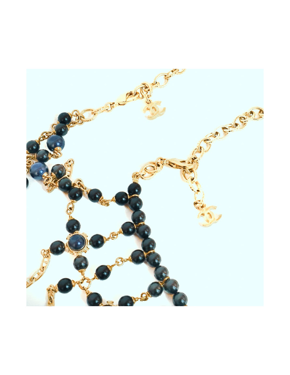 The necklace is in perfect condition, no pearl is missing from the jewel and each of them is in perfect condition. The breastplate is adjustable and measures 41 centimeters minimum and 55 centimeters maximum in terms of neck size. It closes with a double hook, one hook to close the neck, the other to close the back (up to 82 cm). Presence of the CHANEL pastille on the clasp which tells us that the breastplate is from the Fall/Winter 2016 Collection. The jewel is Made in France.