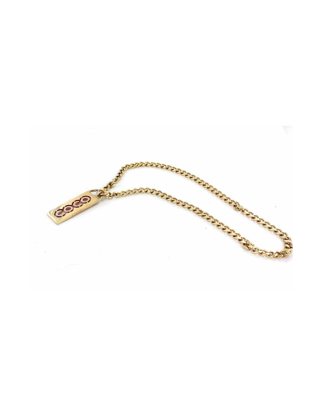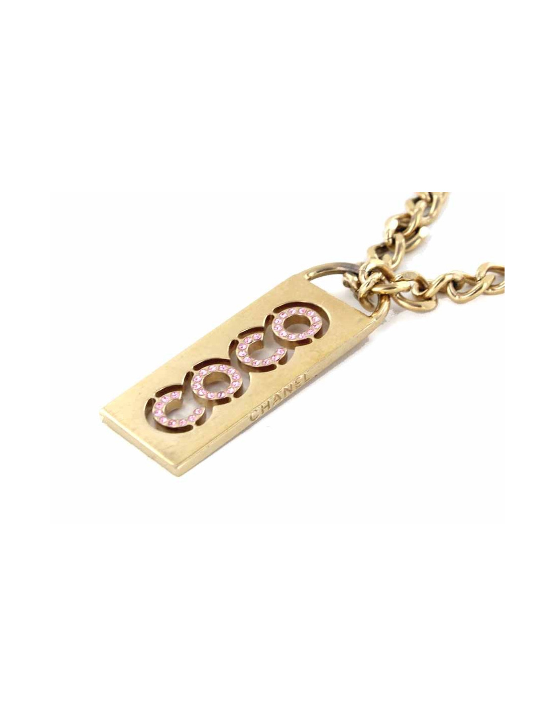 Necklace CHANEL "COCO" in gilded metal and pink rhinestones.