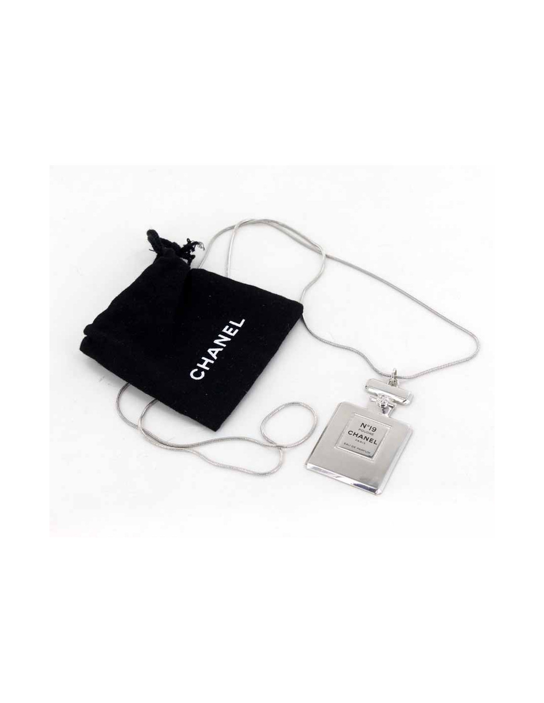 Miniature CHANEL necklace N ° 19 powdered silver.