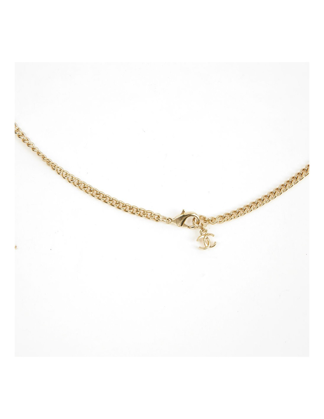 Last items in stock NECKLACES CHANEL chains and coral necklace CHANEL 24272 1,480.00 € CHANEL chains and coral necklace Condition: very goodMaterials: metal, rhinestones, enamelColors: gold, ruby red, coral, transparentHardware: gold plated metalMeasurements: at its shortest 40cm, at its longest: 46cmPendant: 10x7.2cmDetails: A rare piece! Choker necklace composed of 7 fine gold-plated metal chains and a monumental central jewel... Add to cart