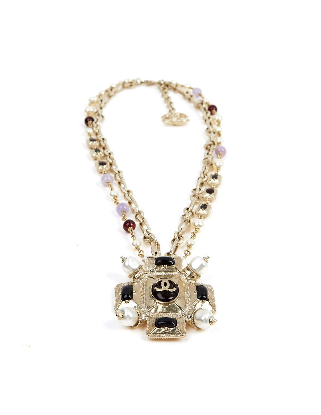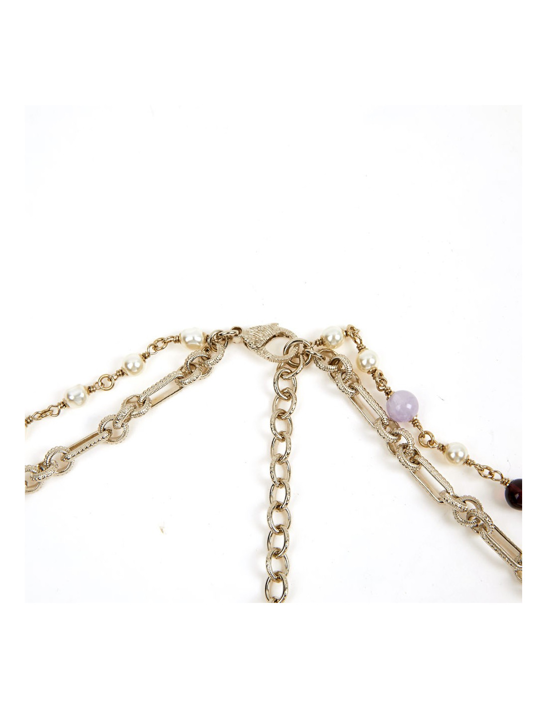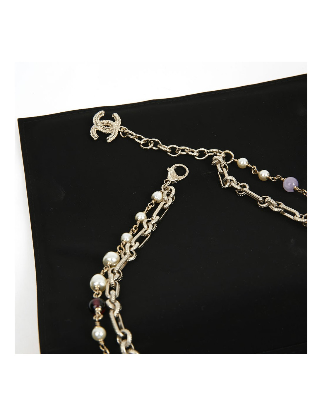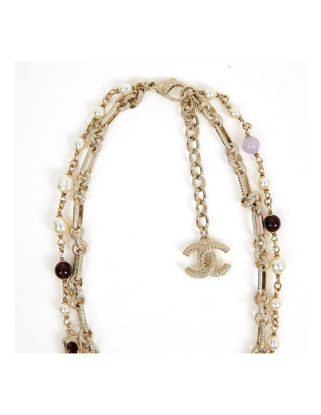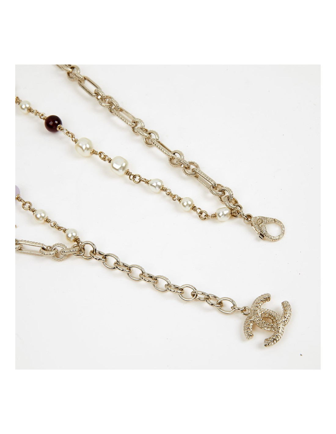 Last items in stock NECKLACES CHANEL pearly glazed brown molten glass choker CHANEL 36453 1,300.00 € CHANEL pearly glazed brown molten glass choker by GRIPOIX Condition : very goodMade in FranceMaterial : pearly molten glass beadsColor : glazed brownMeasurements : total length 48 cm, adjustable on 5 cm, beads 2 x 1 cmHardware : gold plated metalStamp: yesYear : circa 1980Details : entirely handcrafted beads by GRIPOIX. Add to cart