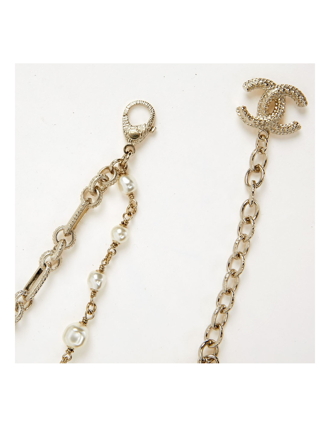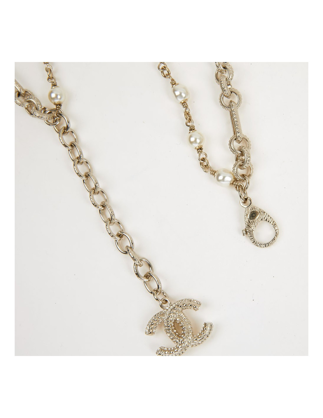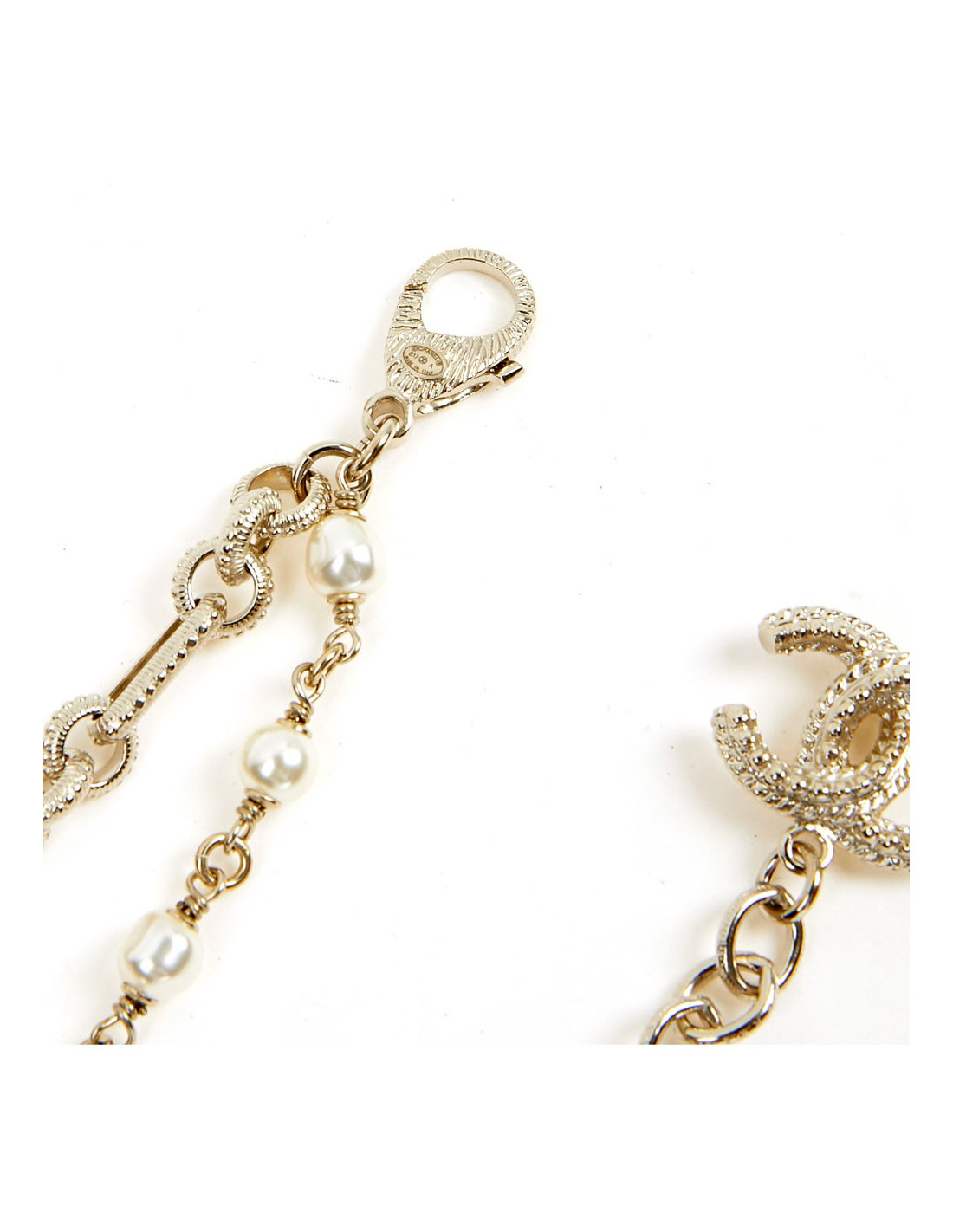 Last items in stock NECKLACES CHANEL vintage pearly molten glass choker by GRIPOIX CHANEL 36455 1,300.00 € CHANEL vintage pearly molten glass choker by GRIPOIX Condition: very goodMade in FranceMaterial: pearly molten glass beadsColor : citrine-orangeMeasurements : total length 48 cm, adjustable on 3 cm, beads diameter 2 cmStamp: noHardware : gold plated metalYear: 1986Details : beads entirely handmade by GRIPOIX Add to cart