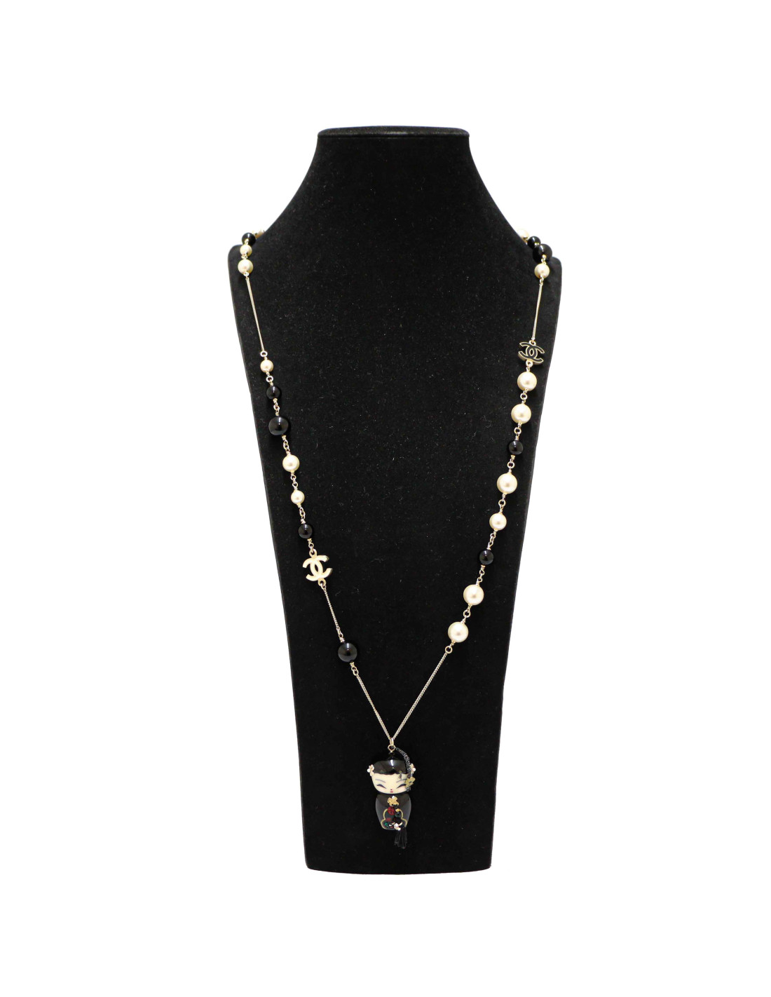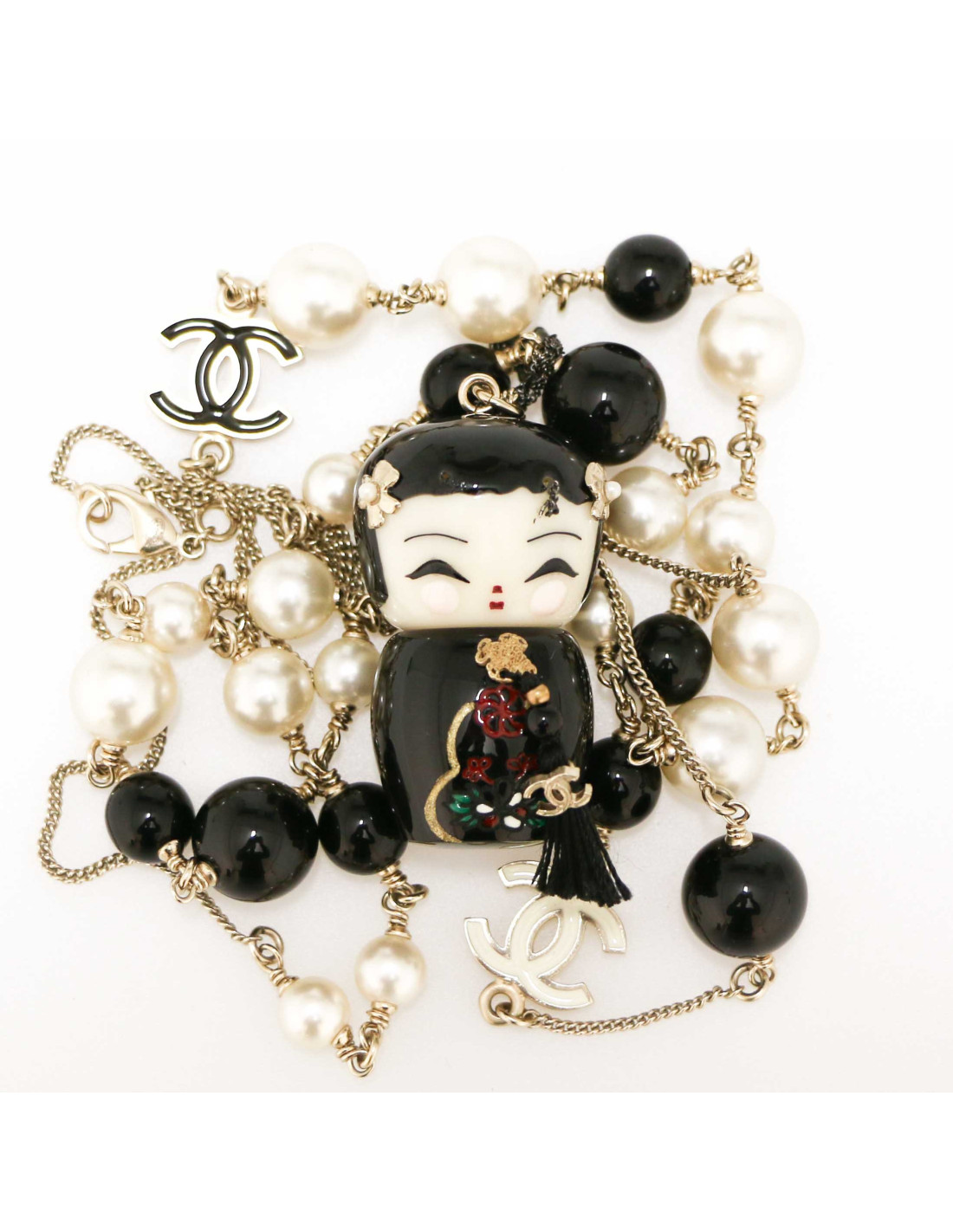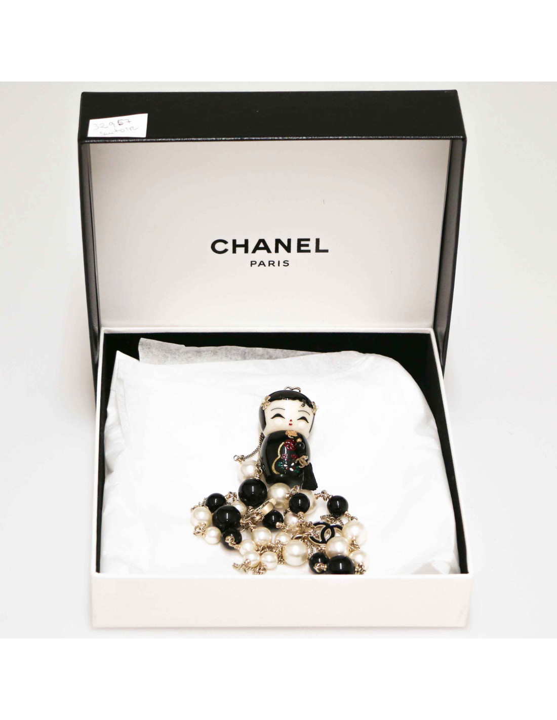 Last items in stock NECKLACES CHANEL multichain pearls and rhinestones long necklace CHANEL 32622 7,500.00 € CHANEL multichain pearls and rhinestones long necklace Condition : very goodMade in FranceGender : long necklaceMaterials : metal, rhinestones, pearly beadsColors : gold, mother-of-pearlMeasurements (adjustable) : 90-100 cmYear: Spring 2016Hardware : light goldDetails : multi-row necklace with Chanel coins and pendant, CC pendant on clasp Advantage Valois... Add to cart