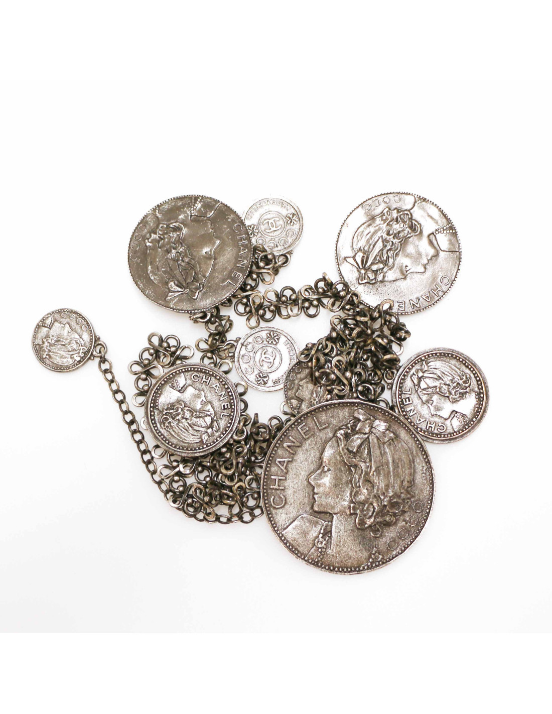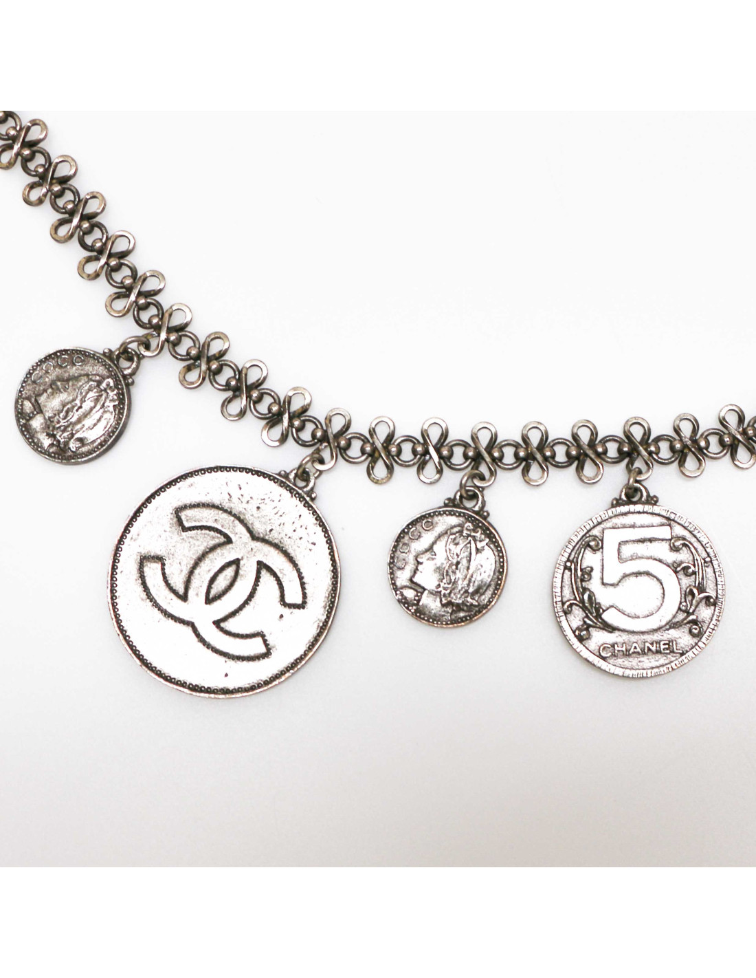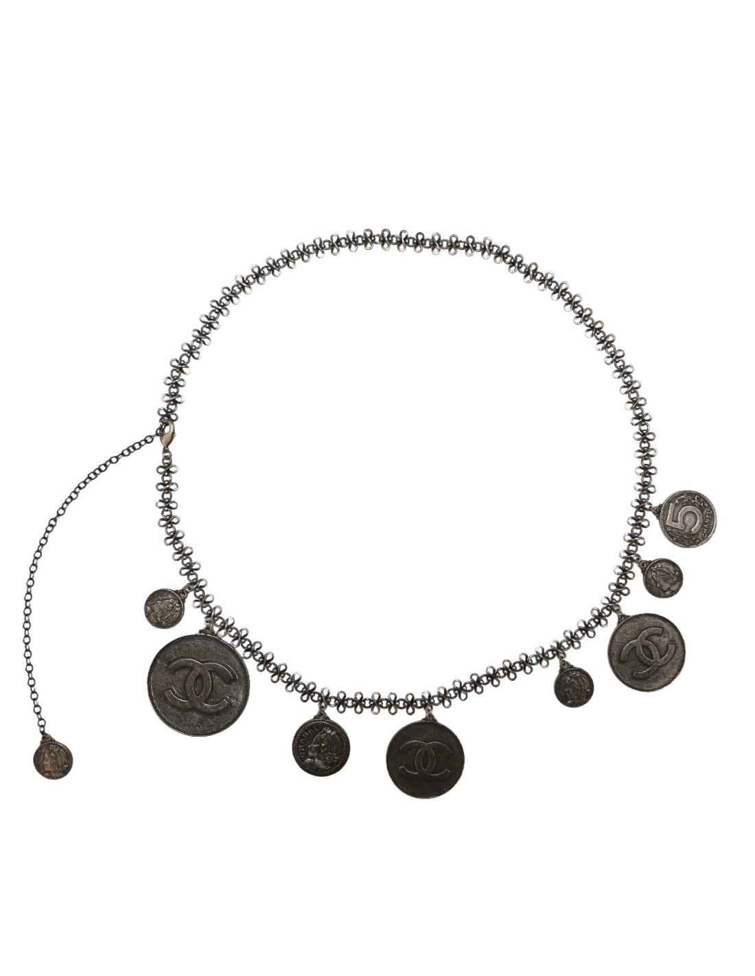 CHANEL silver coins belt-necklace