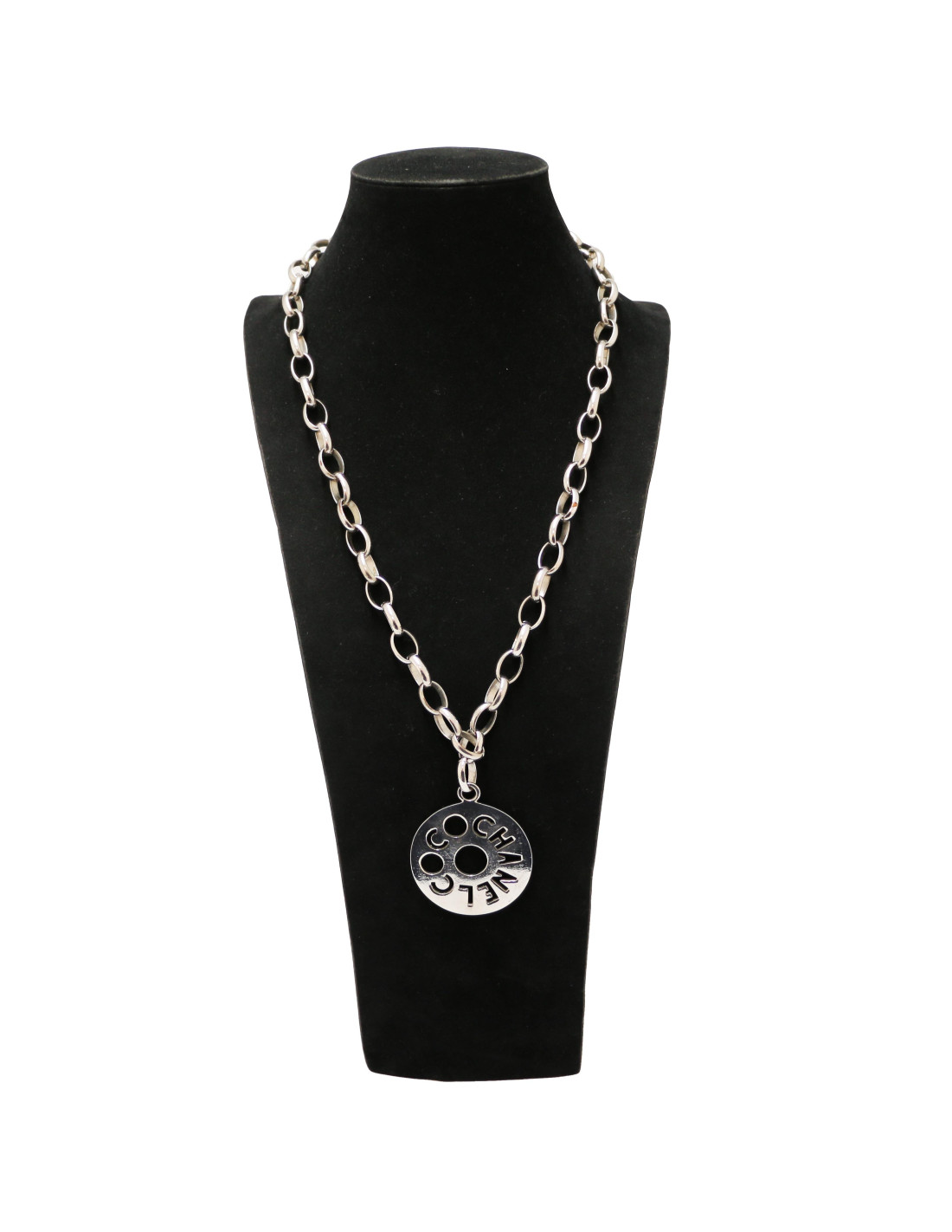 Details : Chanel” signature on hook. Round medallion with COCO CHANEL inscription.