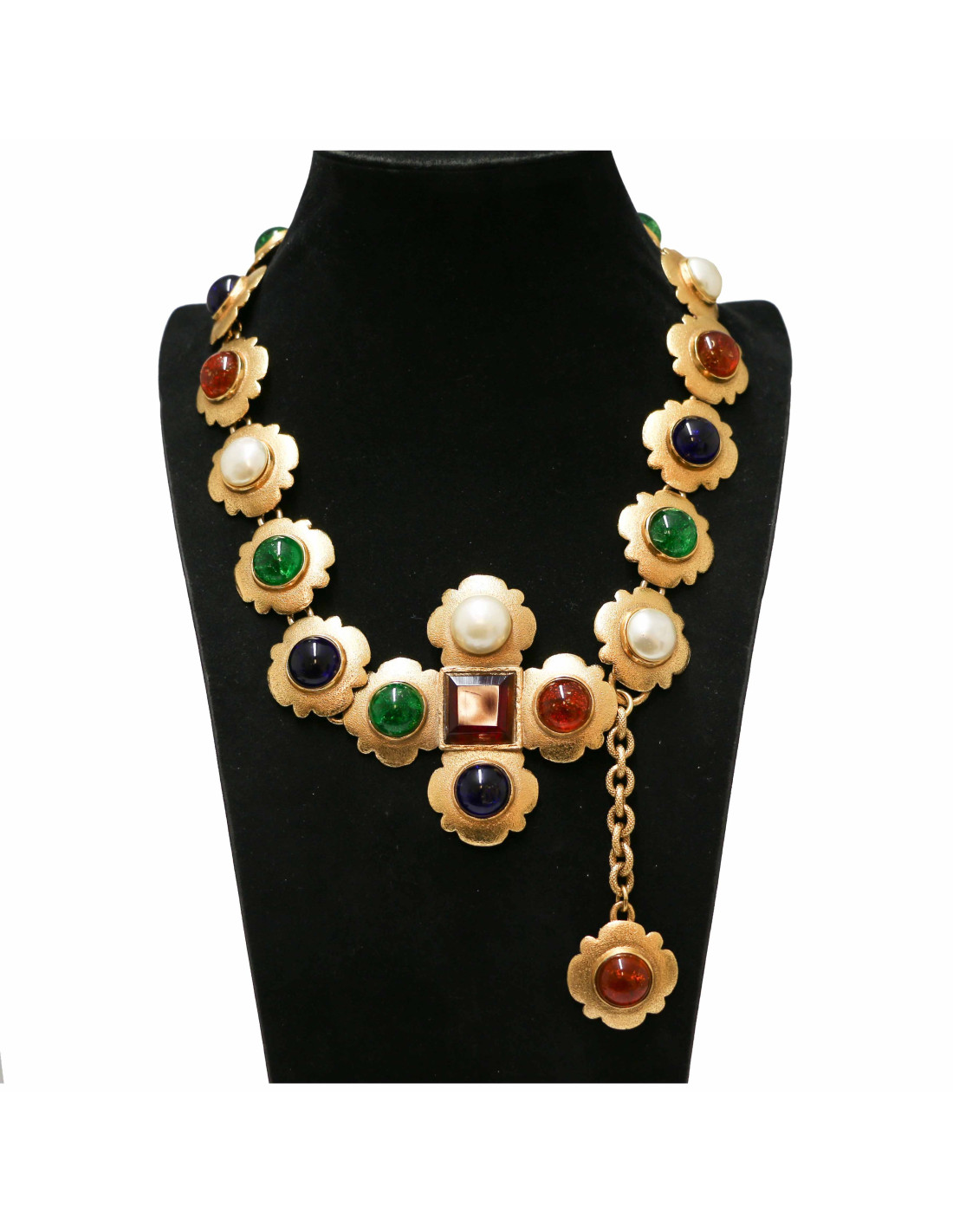 Last items in stock NECKLACES MARGUERITE de VALOIS amber and emerald molten glass flower necklace MARGUERITE DE VALOIS 19177 550.00 € MARGUERITE DE VALOIS flower necklace Model :Long Couture necklaceMaterials :metal, molten glassColors : gold, emerald, amberHardware: gold plated metalMeasurements: total length : 79,5 cm Pendant : 3,2 x 3,2 cm Add to cart