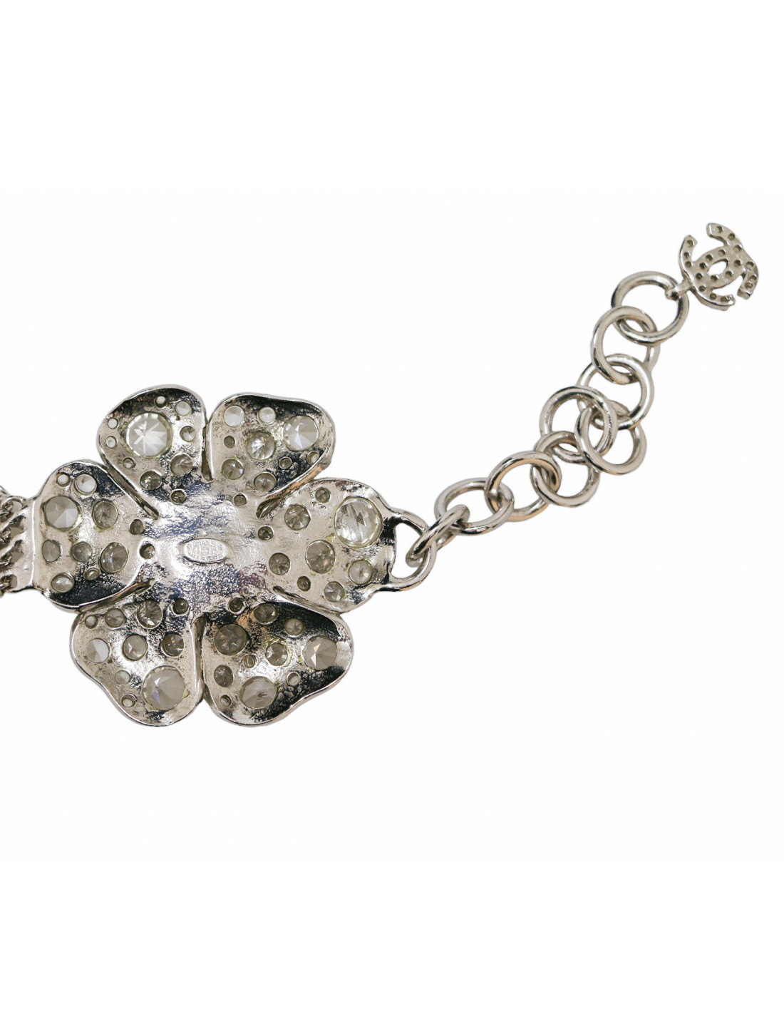 CHANEL silver camellia necklace-belt, Cruise 2005