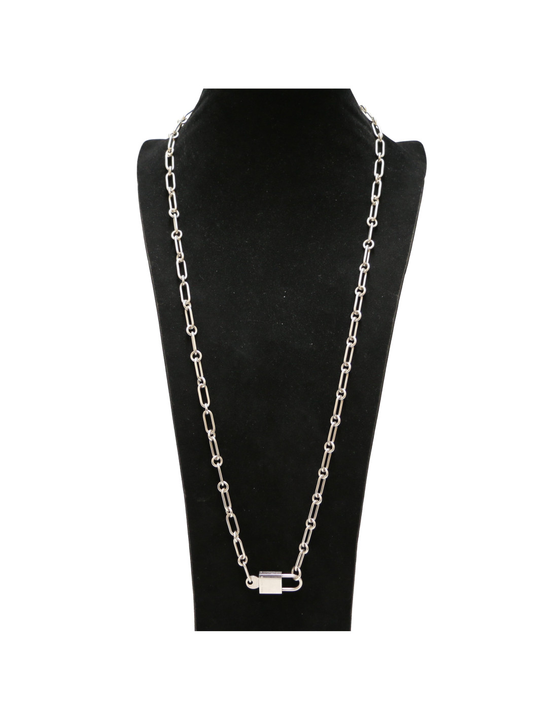Last items in stock NECKLACES MARNI black and silver chainmail bib necklace MARNI 16287 200.00 € MARNI black and silver chainmail bib necklace Condition: very goodMaterials: metal, fabric, stones, beadsColors: black, silver, topazeMeasurements: height: 9cm, width: 24cm, ribbon (x2): 71cmDetails: Marni bib necklace. The necklace is composed of several tiers. The first part is composed of black, transparent, topaz cabochons; the second part of silver... Add to cart