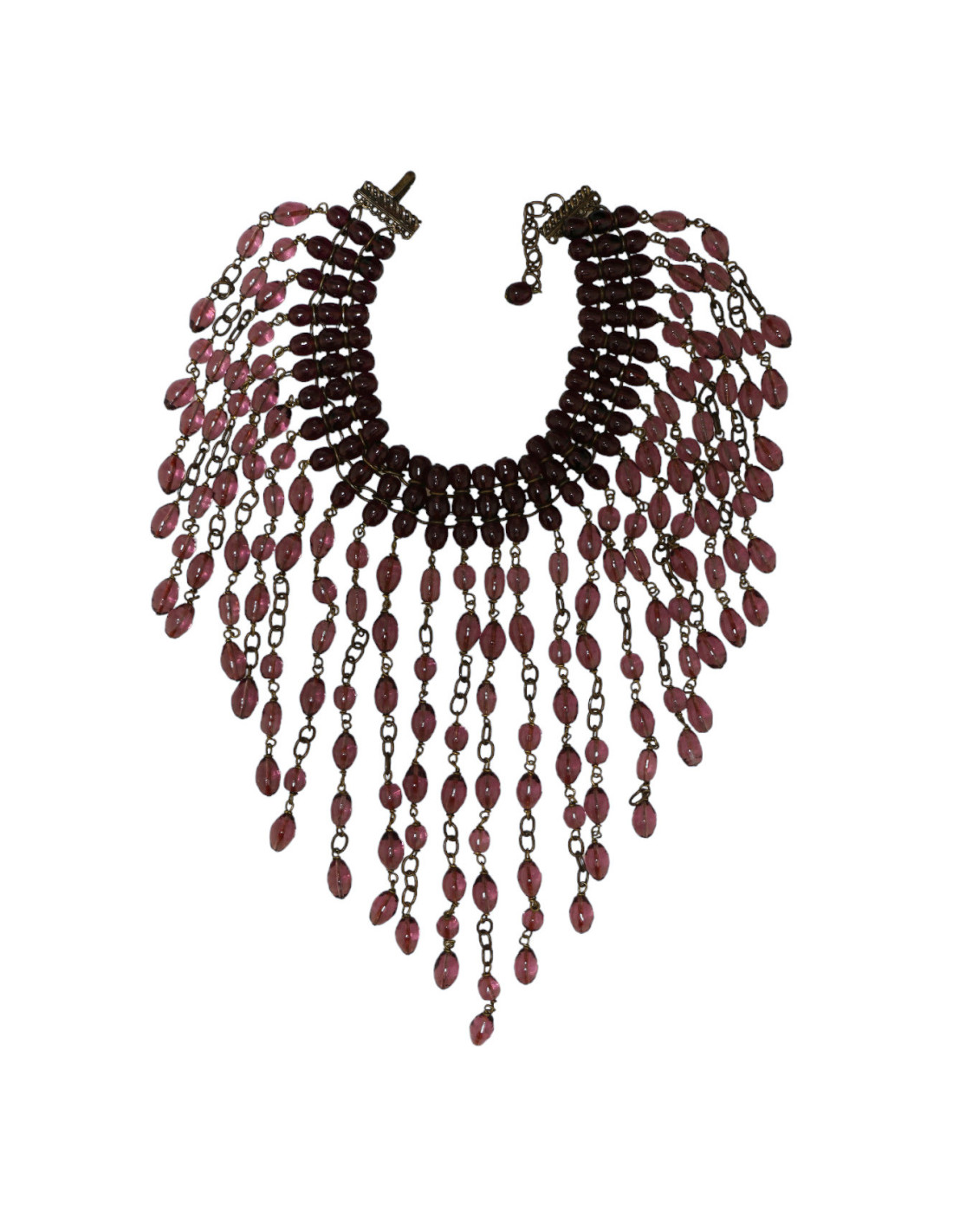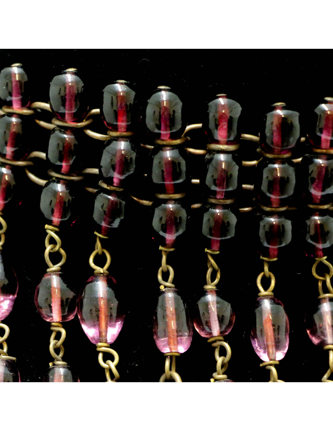 Last items in stock NECKLACES MARGUERITE of VALOIS aged silver chain with purple and burgundy molten glass beads MARGUERITE DE VALOIS 19099 150.00 € MARGUERITE DE VALOIS long necklace Made in FranceCondition: never wornMaterials : metal, molten glassColors : mauve, burgundy, silverHardware: aged silver finish metalBrand label present. Measurements: length: 56 cm Add to cart