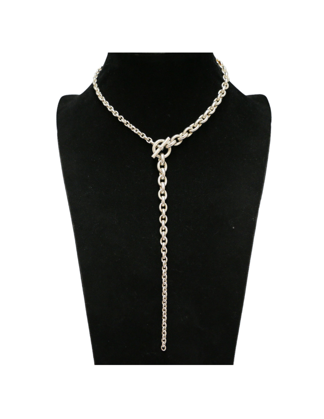 Sold NECKLACES ELIE SAAB antique silver necklace ELIE SAAB 18527 500.00 € ELIE SAAB antique silver necklace Condition: never wornMaterials: metalColor: silverMeasurements: adjustable from 76.5 cm to 100cmDetails: Imposing ELIE SAAB long necklace in aged silver-plated metal embellished with charms. Advantage Valois Vintage Paris: delivered in its ELIE SAAB box View