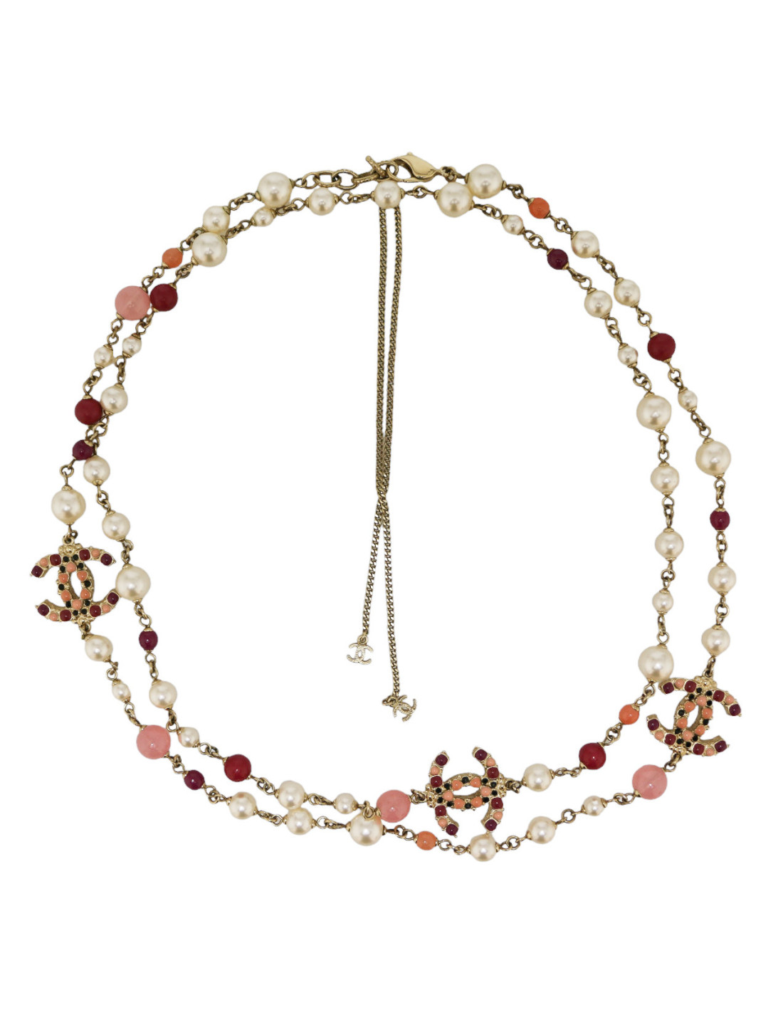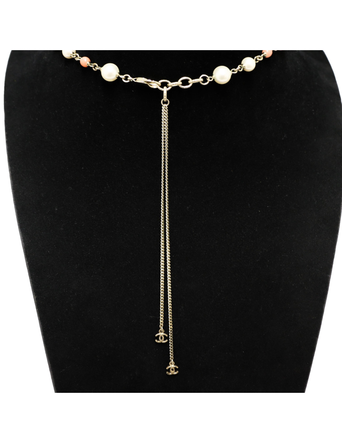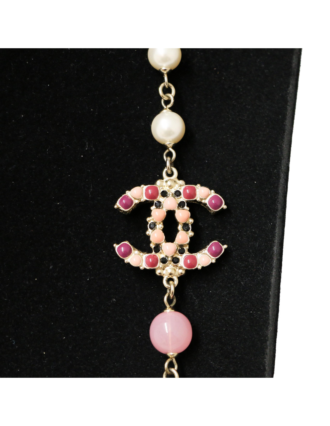 CHANEL mother-of-pearl and pink CC classic long necklace