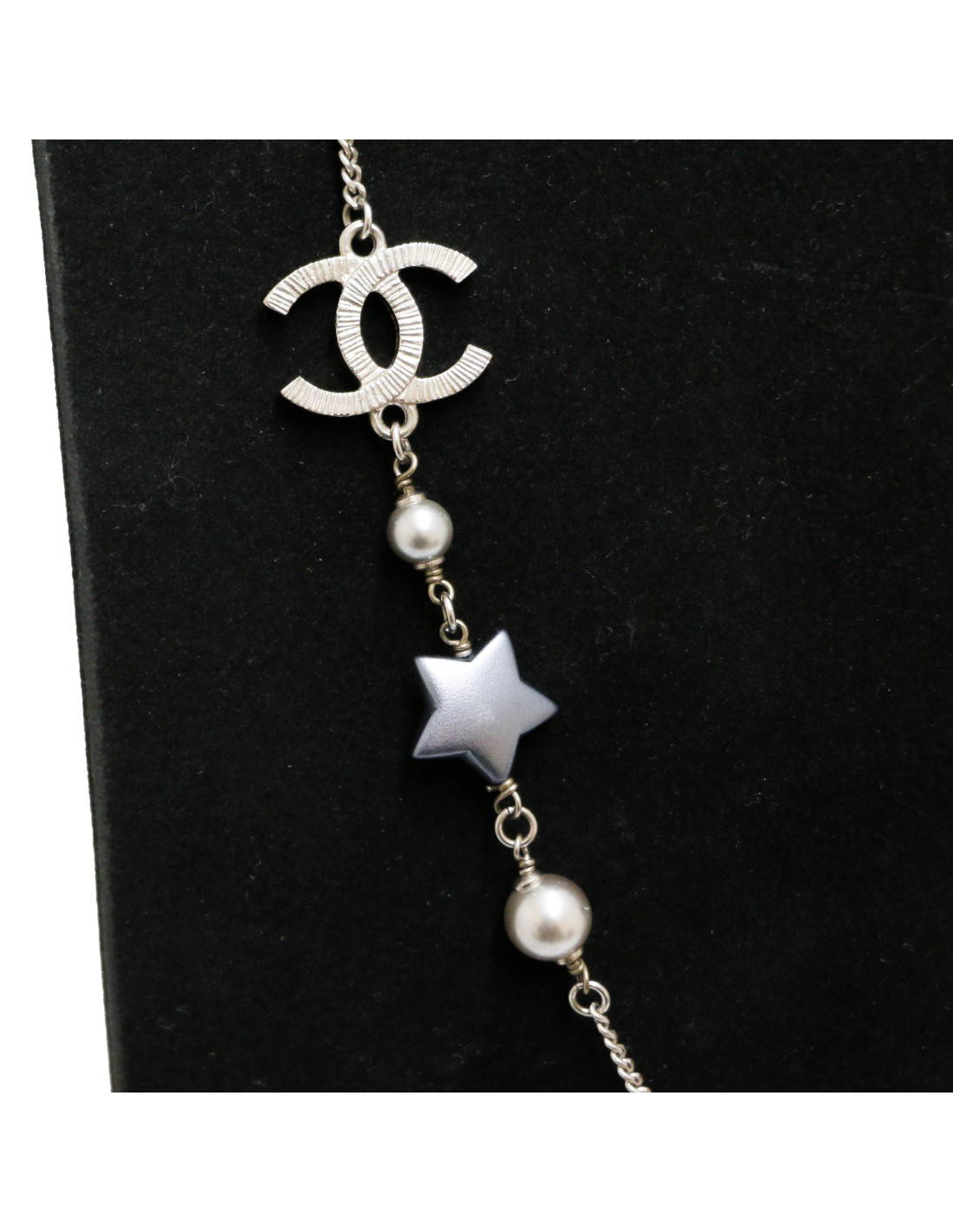 CHANEL silver star long necklace